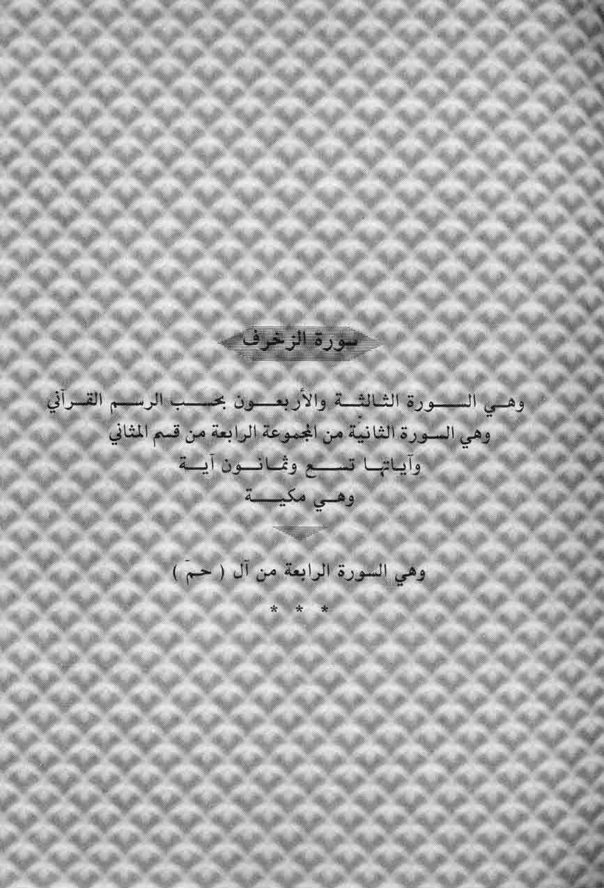 وهي السّورة الثالثة والأربعون بحسب الرّسم القرآني وهي السّورة الثانية من المجموعة الرابعة من قسم المثاني وآياتها تسع وثمانون آية وهي مكيّة وهي السّورة الرابعة من آل (حم)