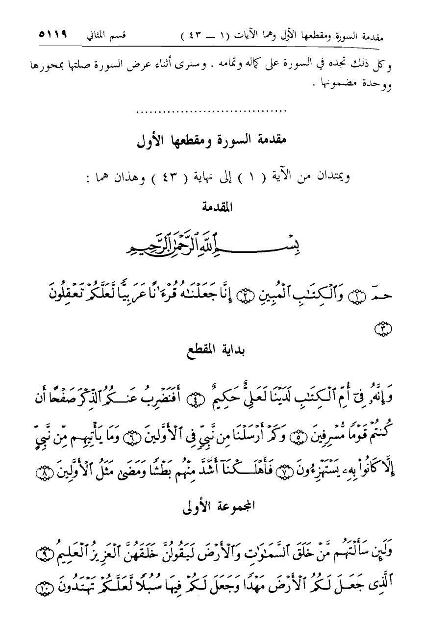 مقدمة السورة ومقطعها الأول ويمتدان من الآية (1) إلى نهاية (43) وهذان هما: