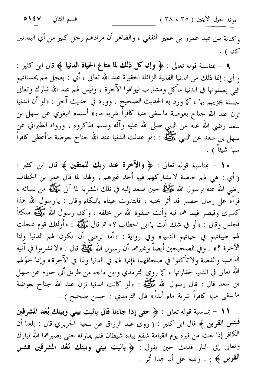 11 - [كلام ابن كثير بمناسبة آية حَتَّى إِذا جاءَنا قالَ يا لَيْتَ بَيْنِي وَبَيْنَكَ .. ]