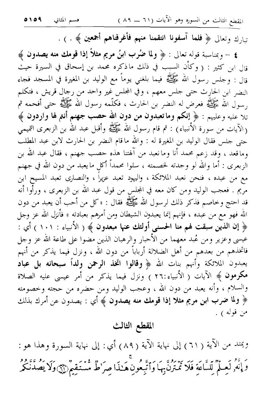 4 - [كلام ابن كثير حول آية وَلَمَّا ضُرِبَ ابْنُ مَرْيَمَ مَثَلًا .. ]