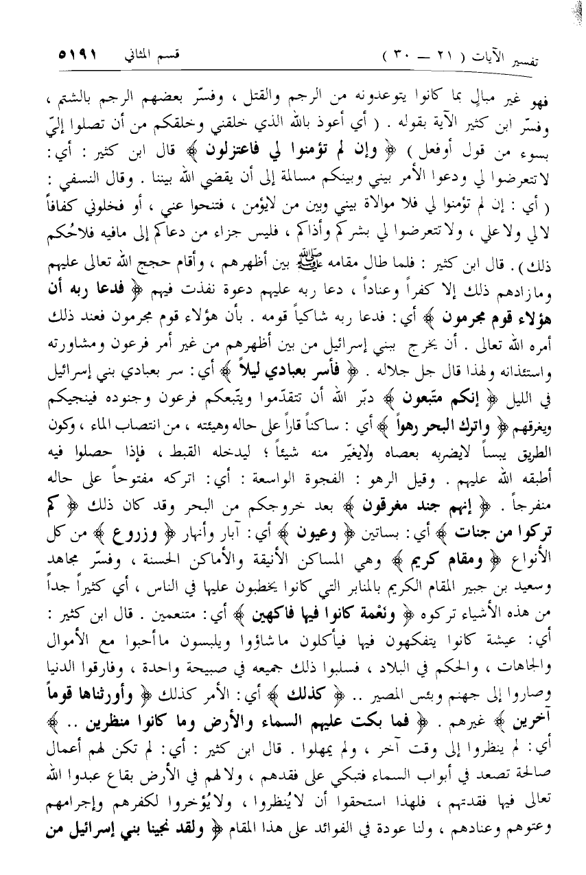 وَاتْرُكِ الْبَحْرَ رَهْواً أي: ساكنا قارا على حاله وهيئته، من انتصاب الماء، وكون الطريق يبسا لا يضربه بعصاه ولا يغيّر منه شيئا؛ ليدخله القبط، فإذا حصلوا فيه أطبقه الله عليهم. وقيل الرهو: الفجوة الواسعة: أي: اتركه مفتوحا على حاله منفرجا. إِنَّهُمْ جُنْدٌ مُغْرَقُونَ بعد خروجكم من البحر وقد كان ذلك