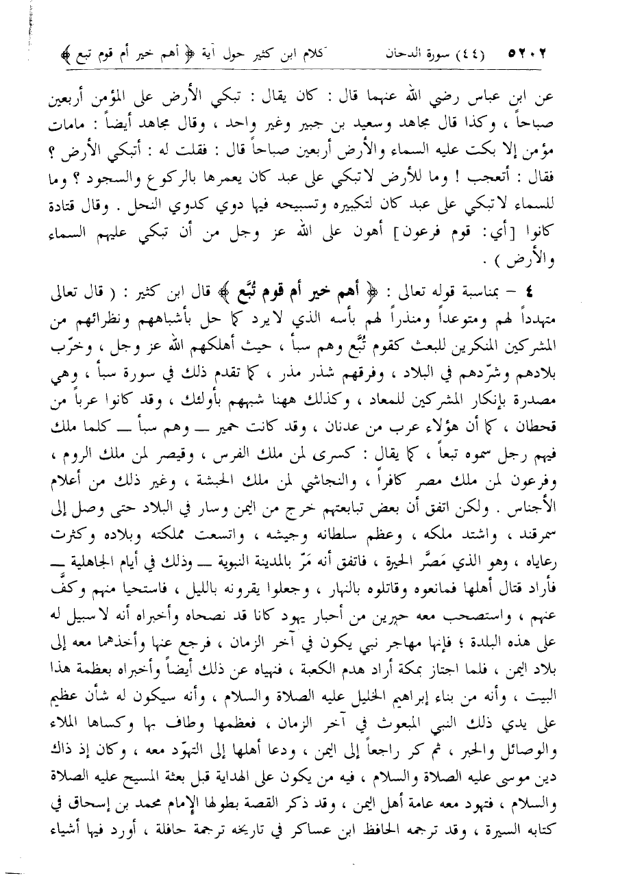4 - [كلام ابن كثير بمناسبة آية أَهُمْ خَيْرٌ أَمْ قَوْمُ تُبَّعٍ]