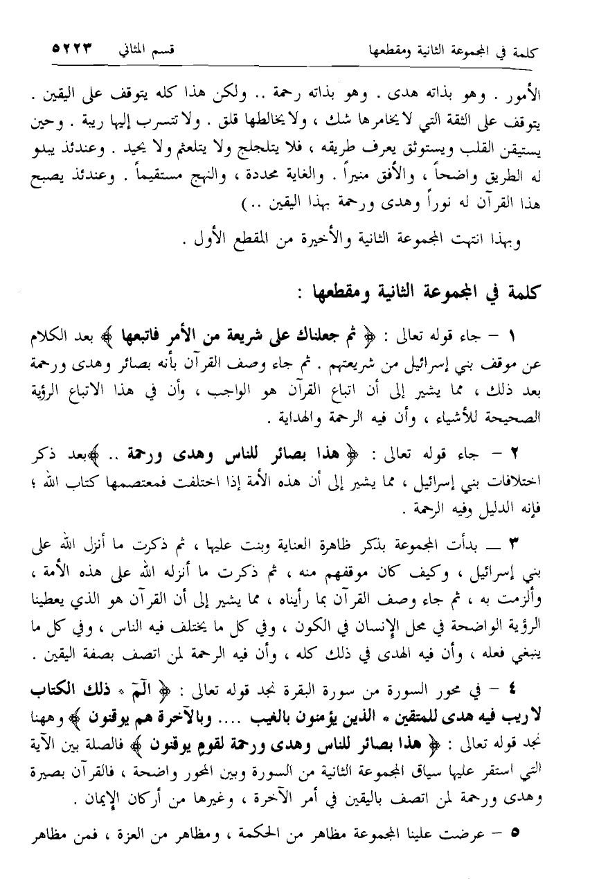 كلمة في المجموعة الثانية ومقطعها: [حول أهمية القرآن للإنسان بعامة ولهذه الأمة بخاصة]