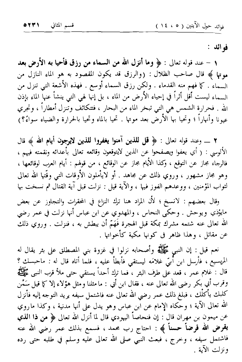 2 - [كلام الألوسي حول آية قُلْ لِلَّذِينَ آمَنُوا يَغْفِرُوا لِلَّذِينَ لا يَرْجُونَ أَيَّامَ اللَّهِ]