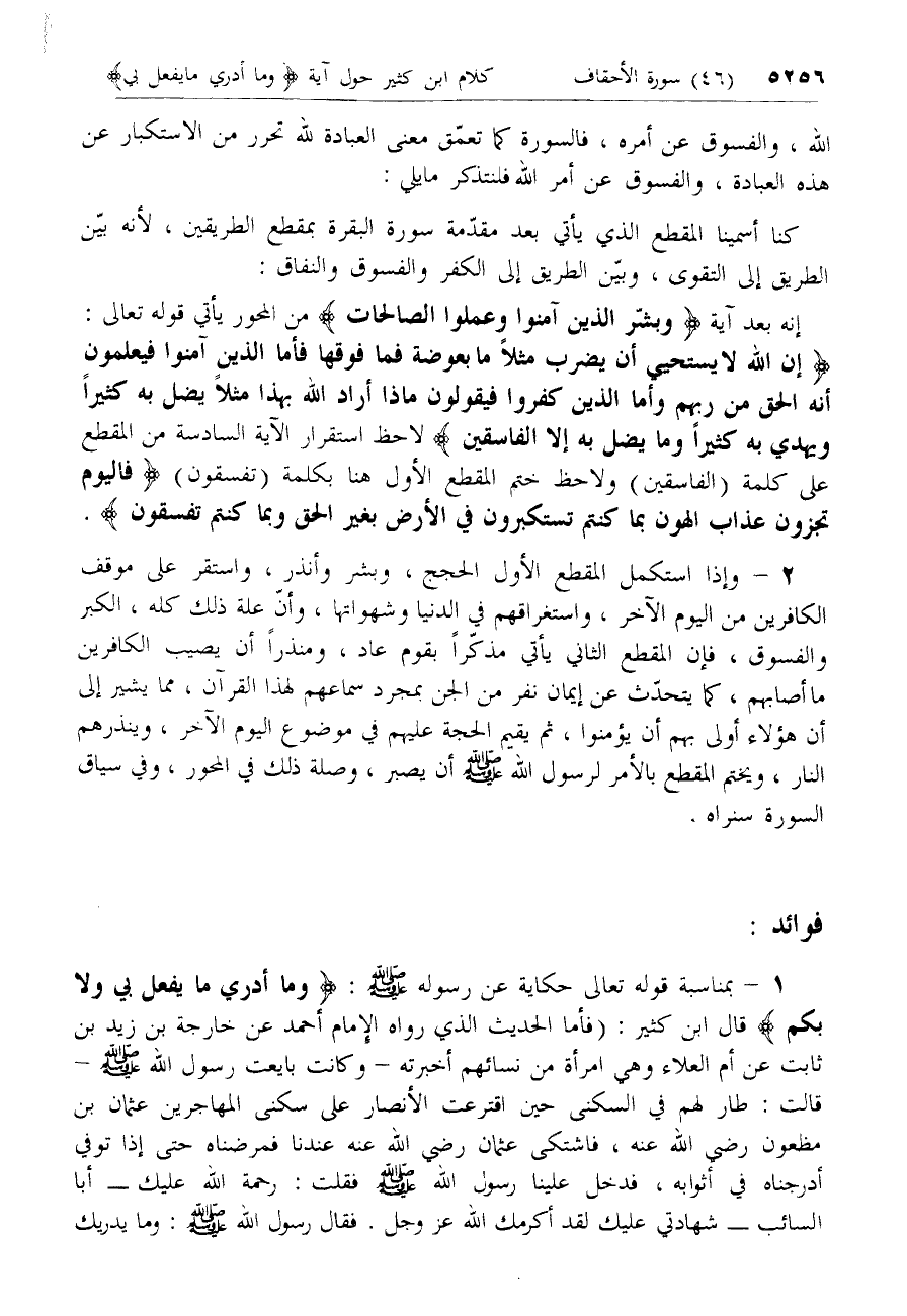 1 - [كلام ابن كثير حول آية وَما أَدْرِي ما يُفْعَلُ بِي .. ]