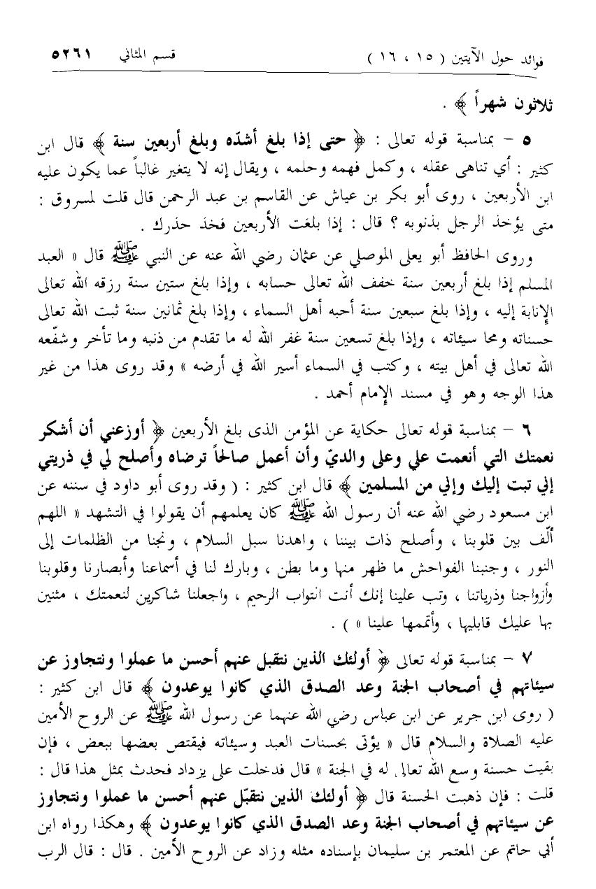 5 - [كلام ابن كثير حول آية .. وَبَلَغَ أَرْبَعِينَ سَنَةً .. والحكمة في ذلك]