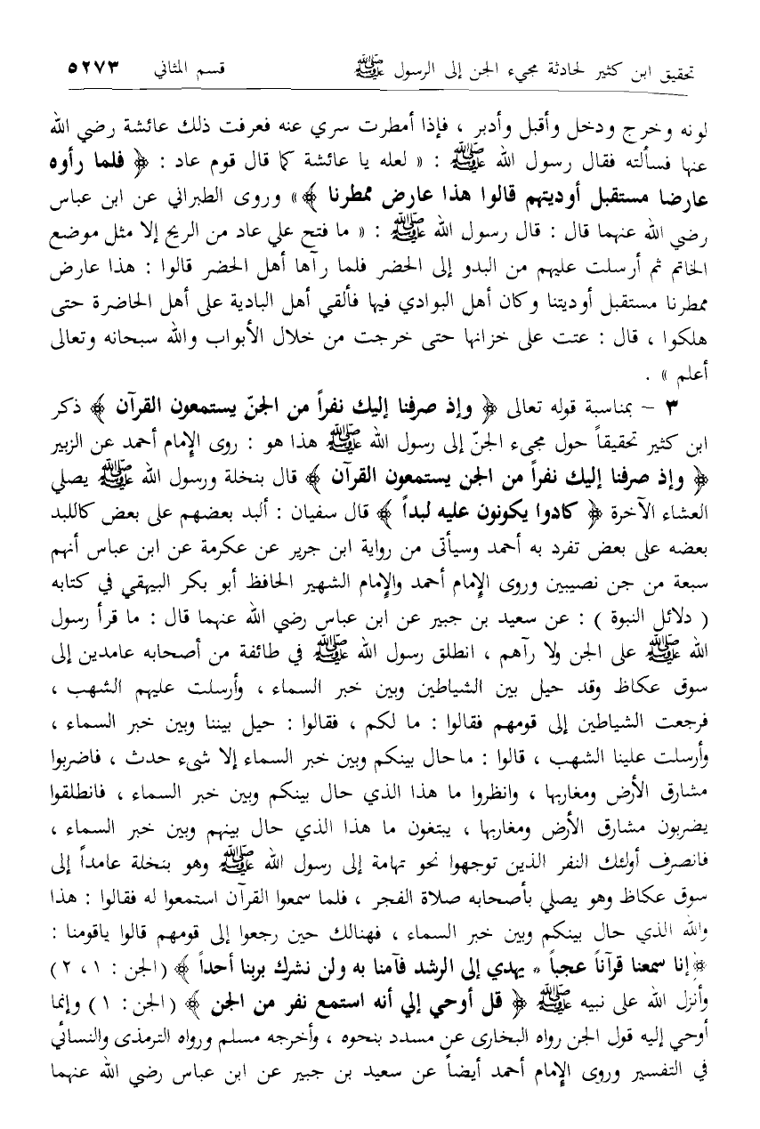 3 - [تحقيق ابن كثير لحادثة مجئ الجن إلى الرسول صلّى الله عليه وسلم]
