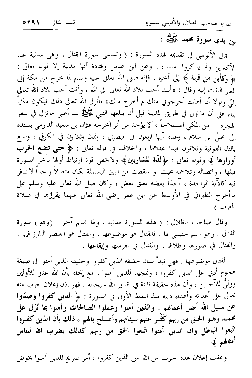 بين يدي سورة محمد صلّى الله عليه وسلم: [تقديم الألوسي وصاحب الظلال للسورة]