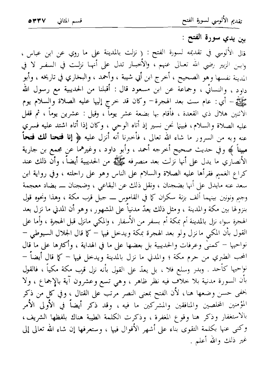 بين يدي سورة الفتح [وتقديم الألوسي]:
