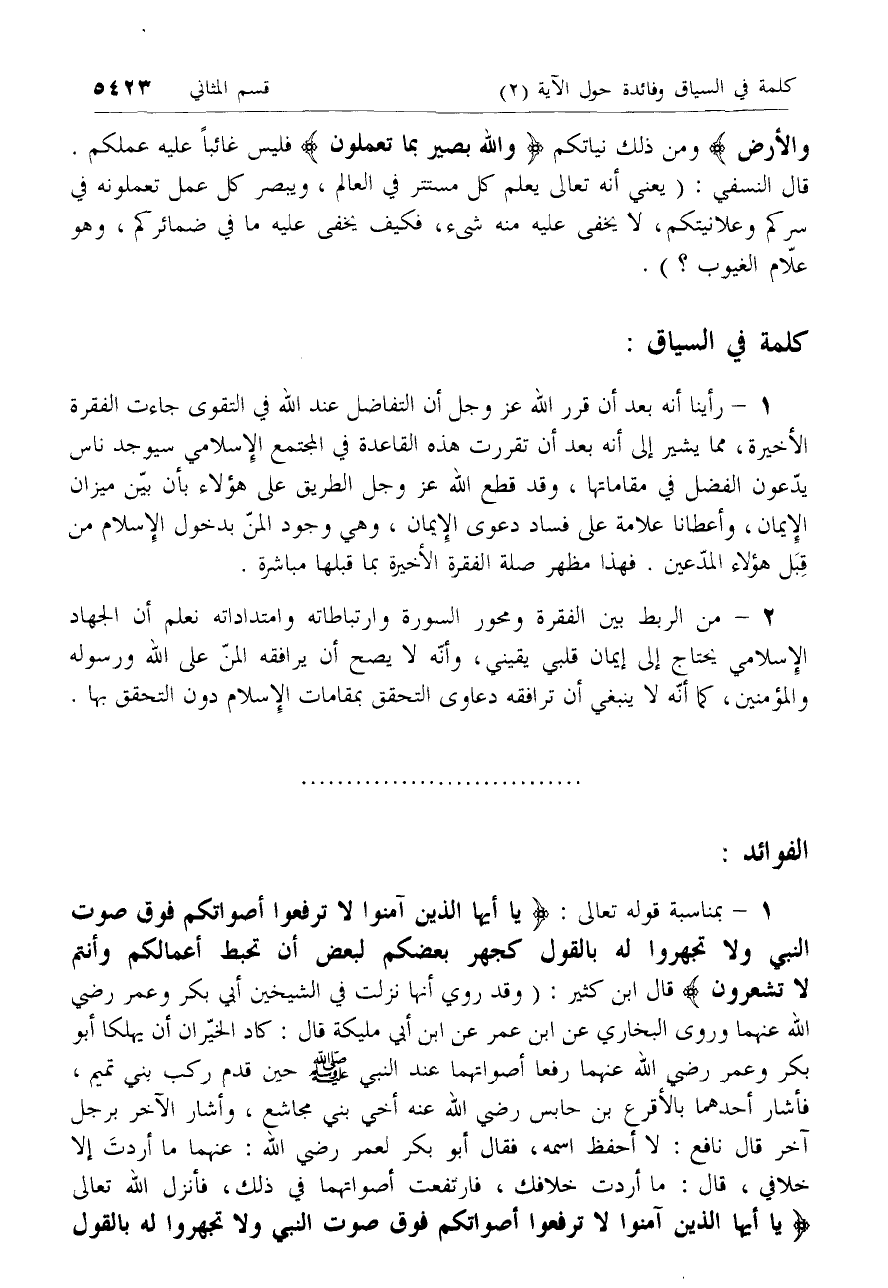 1 - [كلام ابن كثير عن الأدب مع رسول الله صلّى الله عليه وسلم بمناسبة الآية (2)]