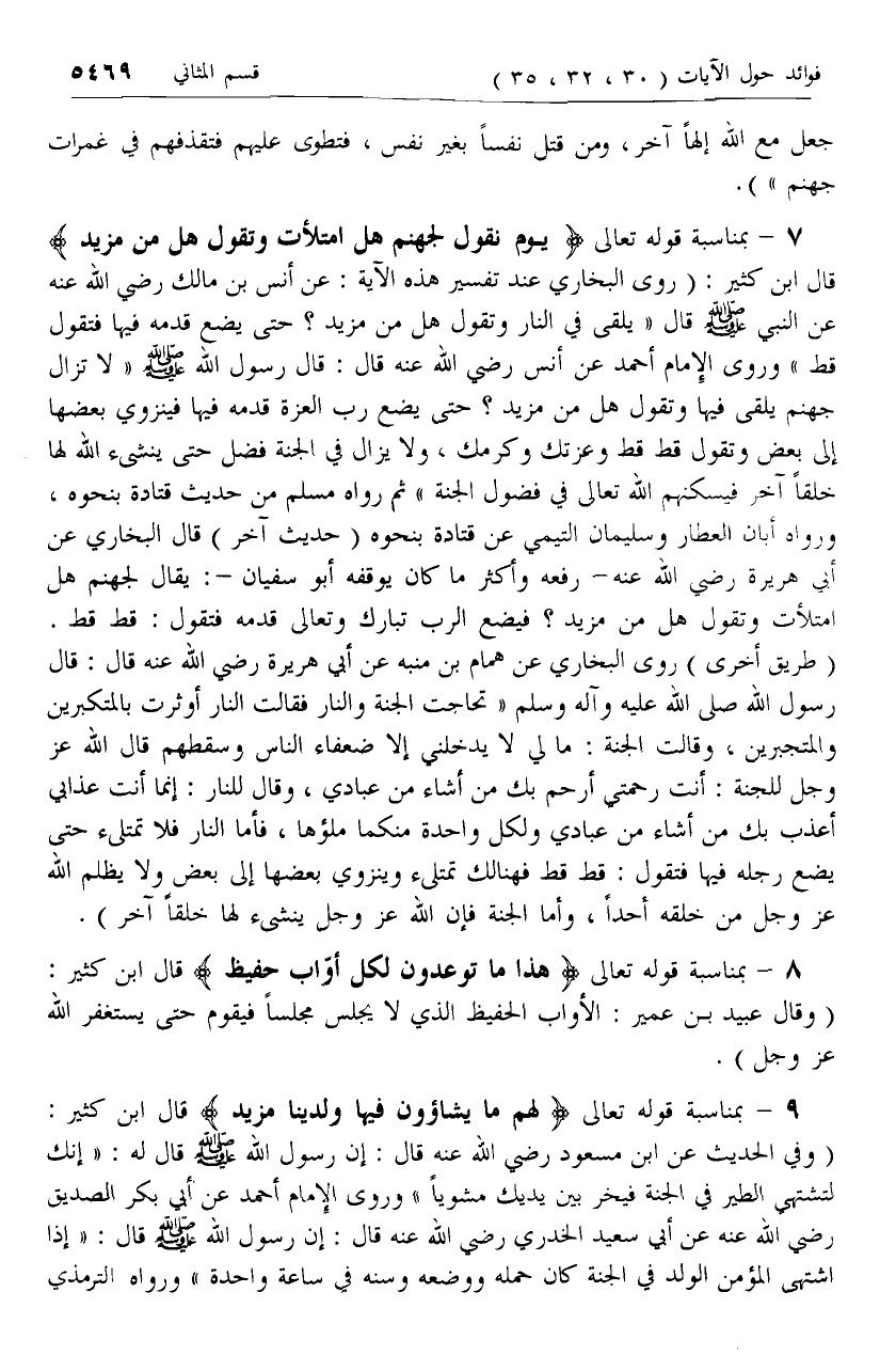 7 - [كلام ابن كثير عن حجم الجنة والنار بمناسبة آية يَوْمَ نَقُولُ لِجَهَنَّمَ .. ]