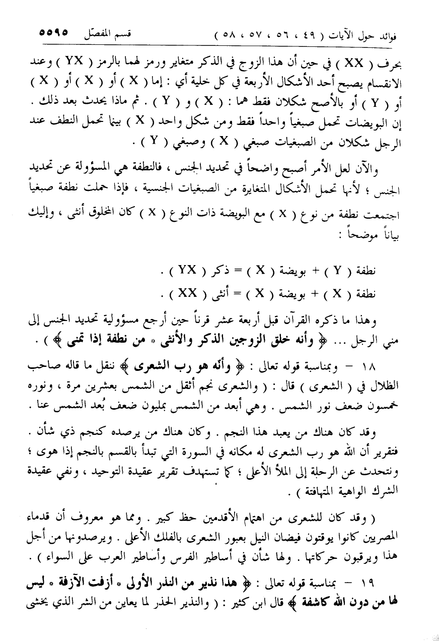 18 - وبمناسبة قوله تعالى: وَأَنَّهُ هُوَ رَبُّ الشِّعْرى ننقل ما قاله صاحب الظلال في (الشعرى) قال: (والشعرى نجم أثقل من الشمس بعشرين مرة، ونوره خمسون ضعف نور الشمس. وهي أبعد من الشمس بمليون ضعف بعد الشمس عنا.