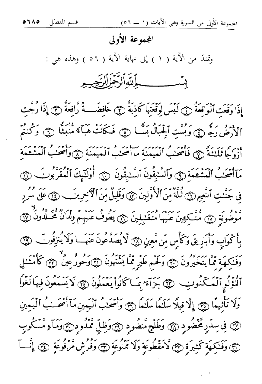 وتمتد من الآية (1) إلى نهاية الآية (56) وهذه هي: