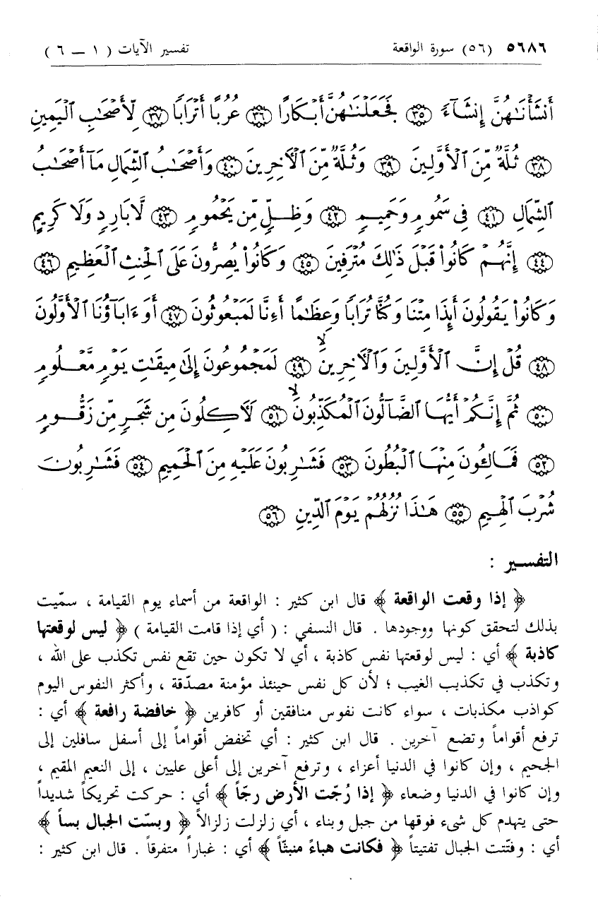 إِذا وَقَعَتِ الْواقِعَةُ قال ابن كثير: الواقعة من أسماء يوم القيامة، سميت بذلك لتحقق كونها ووجودها. قال النسفي: (أي إذا قامت القيامة)