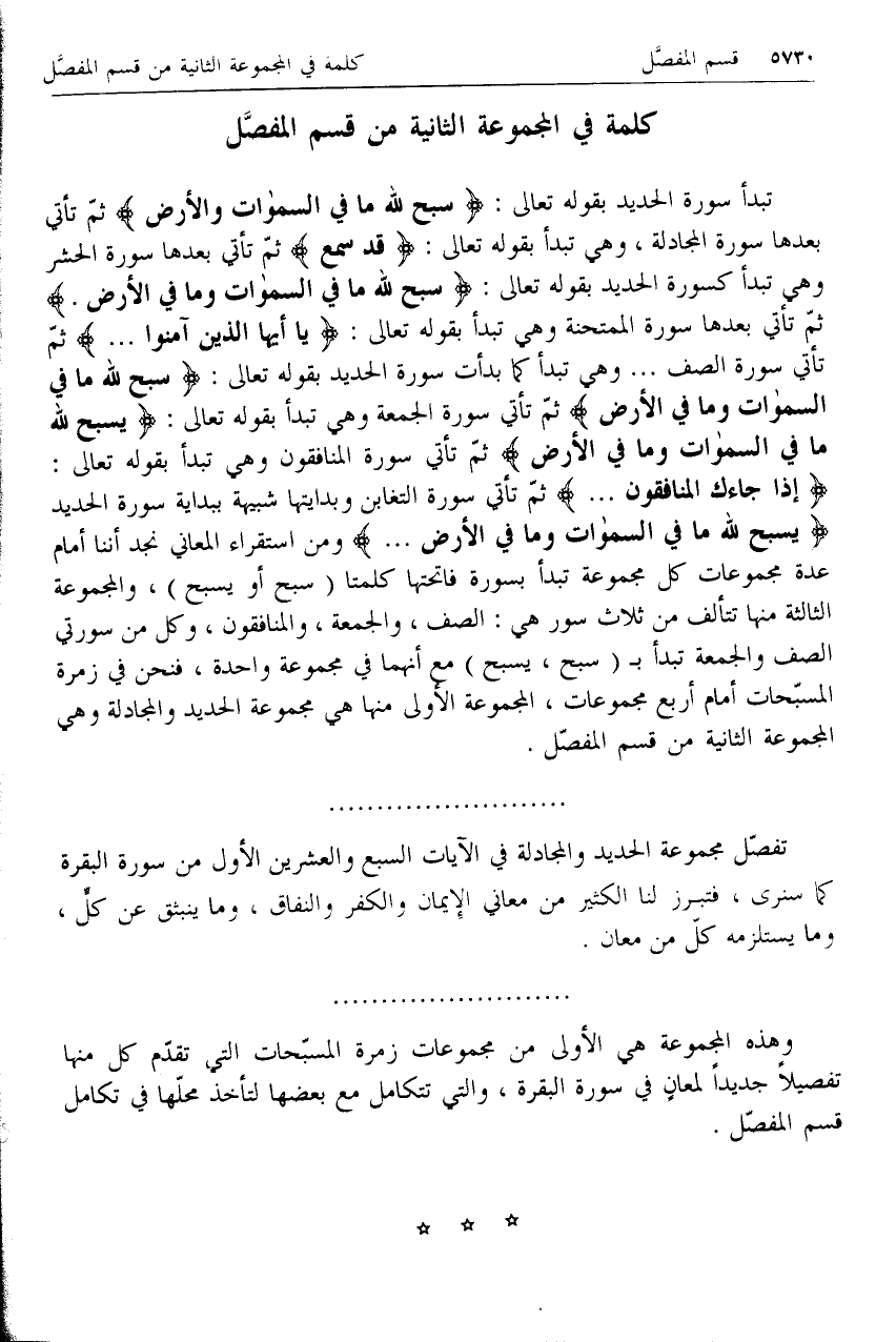 وهذه المجموعة هي الأولى من مجموعات زمرة المسبحات التي تقدم كل منها تفصيلا جديدا لمعان في سورة البقرة، والتي تتكامل مع بعضها لتأخذ محلها في تكامل قسم المفصل.