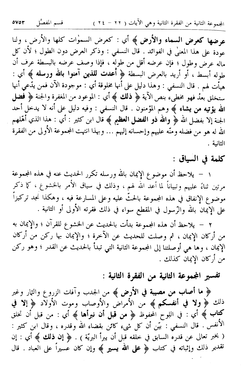 2 - يلاحظ أن هذه المجموعة بدأت بالحديث عن الخشوع للقرآن؛ والإيمان به من أركان الإيمان، ثم وصلت للحديث عن الآخرة؛ والإيمان بها ركن من أركان الإيمان، وها هي أوصلتنا إلى المجموعة الثانية التي تبدأ بالحديث عن القدر؛ وهو ركن من أركان الإيمان كذلك.