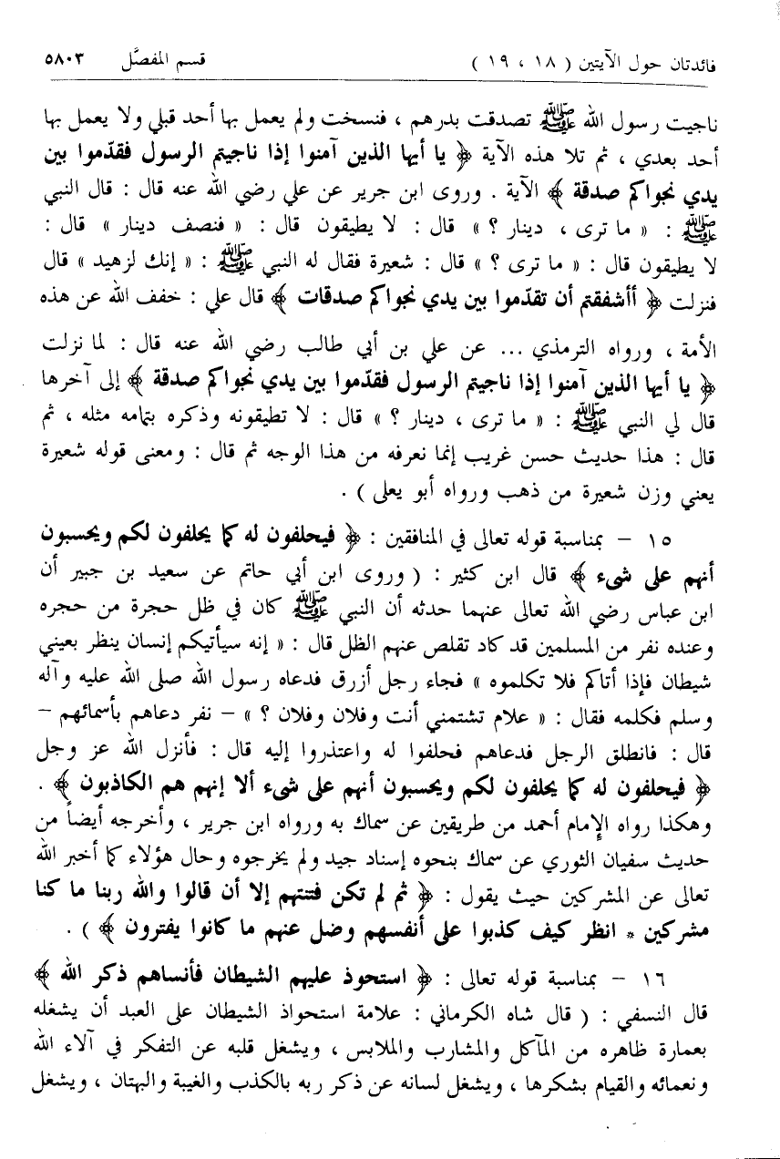 16 - بمناسبة قوله تعالى: اسْتَحْوَذَ عَلَيْهِمُ الشَّيْطانُ فَأَنْساهُمْ ذِكْرَ اللَّهِ قال النسفي: (قال شاه الكرماني: علامة استحواذ الشيطان على العبد أن يشغله بعمارة ظاهره من
