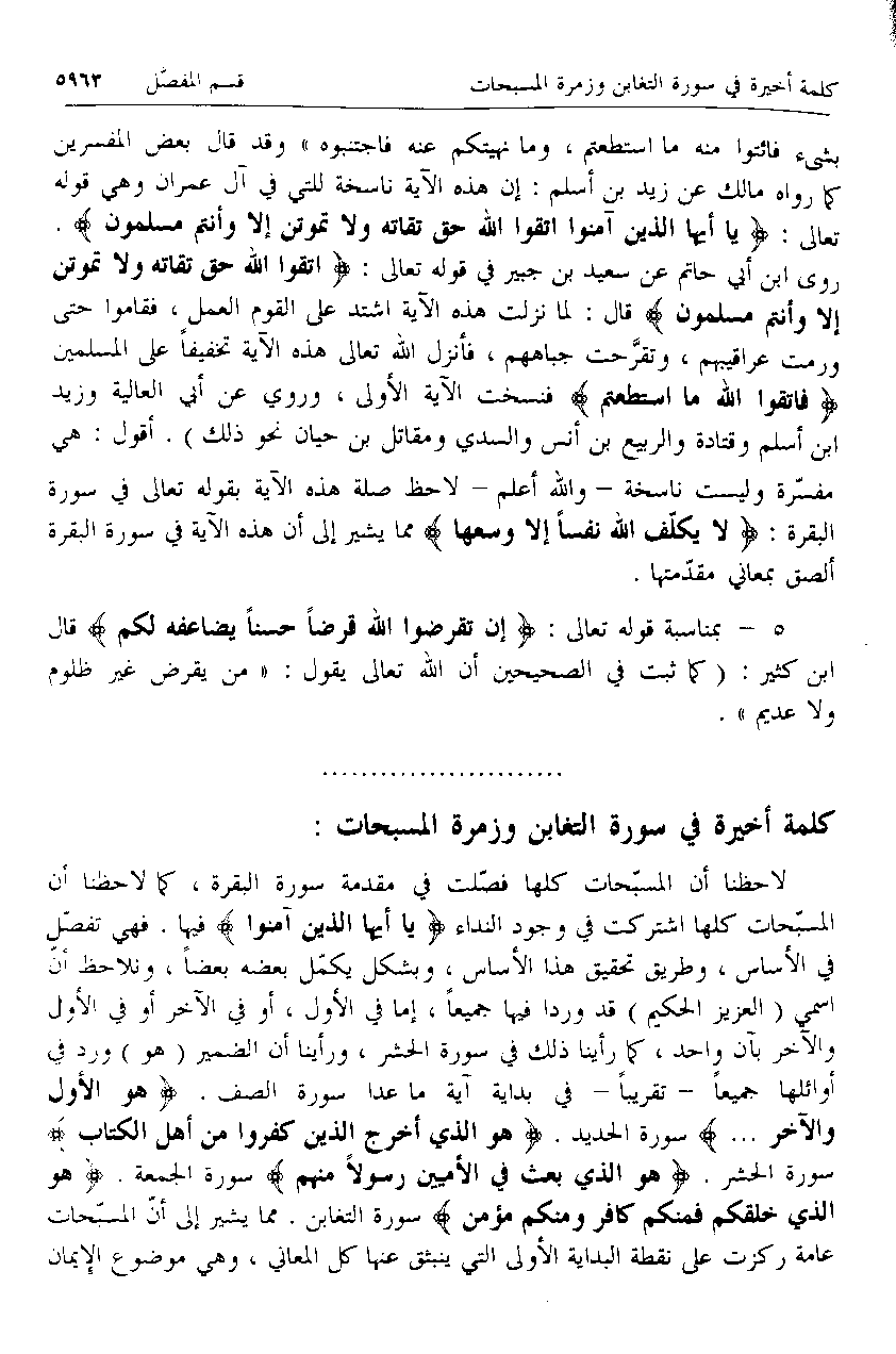كلمة أخيرة في سورة التغابن وزمرة المسبحات: