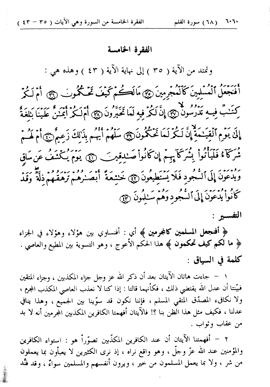 أَفَنَجْعَلُ الْمُسْلِمِينَ كَالْمُجْرِمِينَ أي: أفنساوي بين هؤلاء وهؤلاء في الجزاء