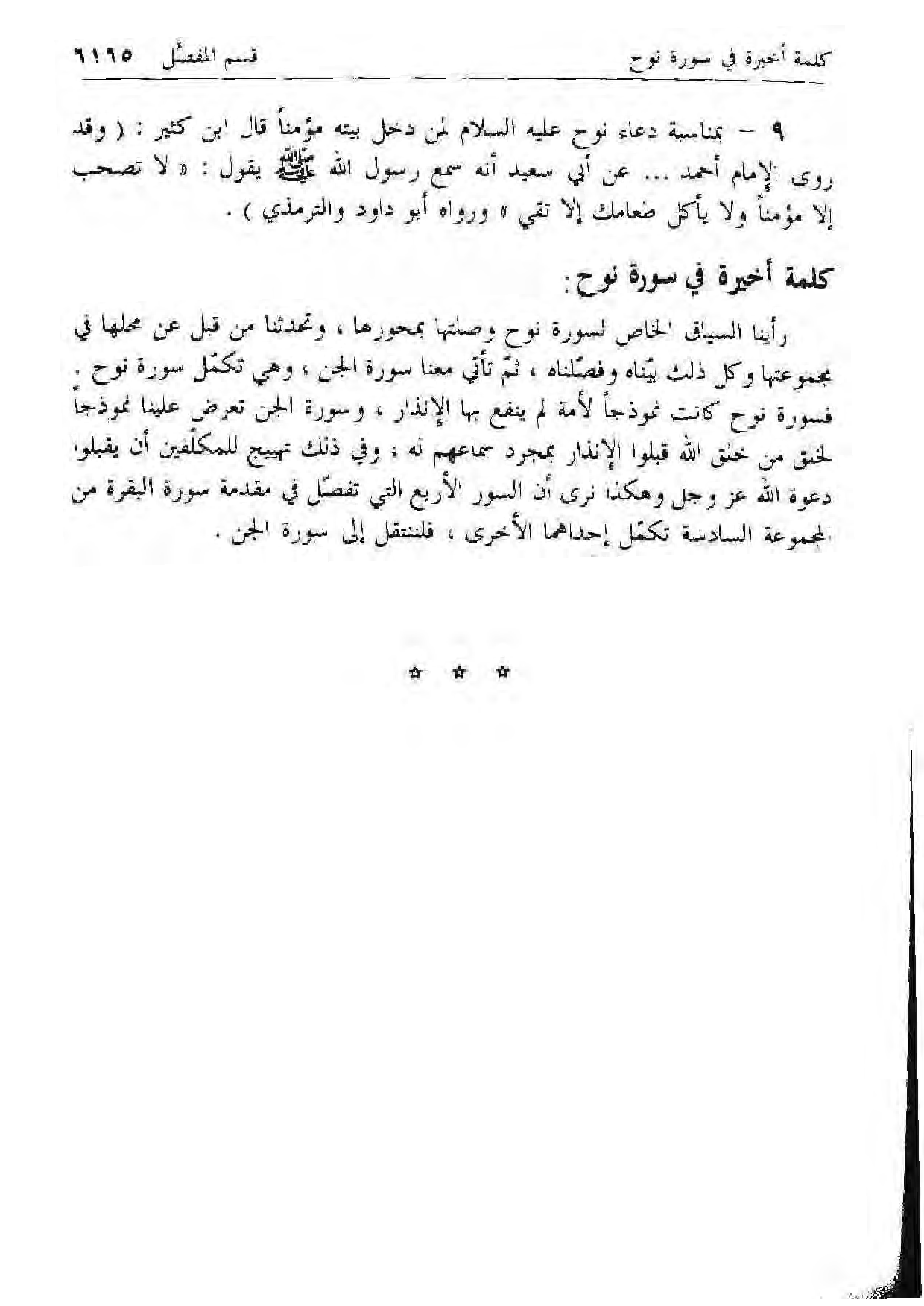9 - بمناسبة دعاء نوح عليه السلام لمن دخل بيته مؤمنا قال ابن كثير: (وقد روى الإمام أحمد ... عن أبي سعيد أنه سمع رسول الله صلى الله عليه وسلم يقول: «لا تصحب إلا