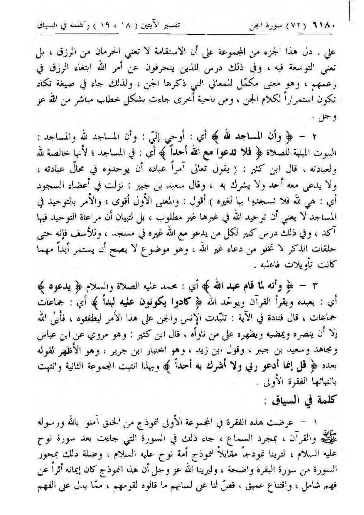 2 - وَأَنَّ الْمَساجِدَ لِلَّهِ أي: أوحي إلي: وأن المساجد لله والمساجد: