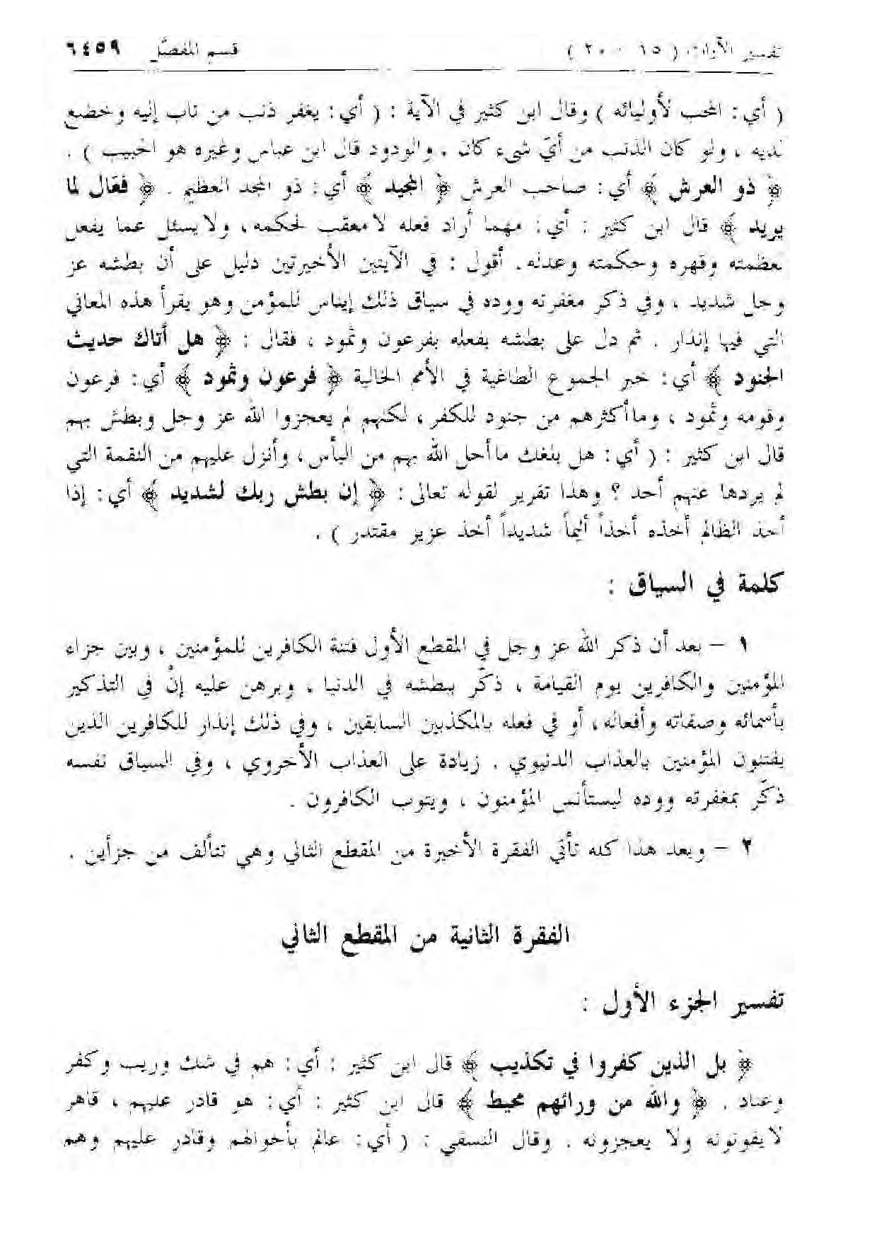 1 - بعد أن ذكر الله عزّ وجل في المقطع الأول فتنة الكافرين للمؤمنين، وبين جزاء المؤمنين والكافرين يوم القيامة، ذكر ببطشه في الدنيا، وبرهن عليه إن في التذكير
