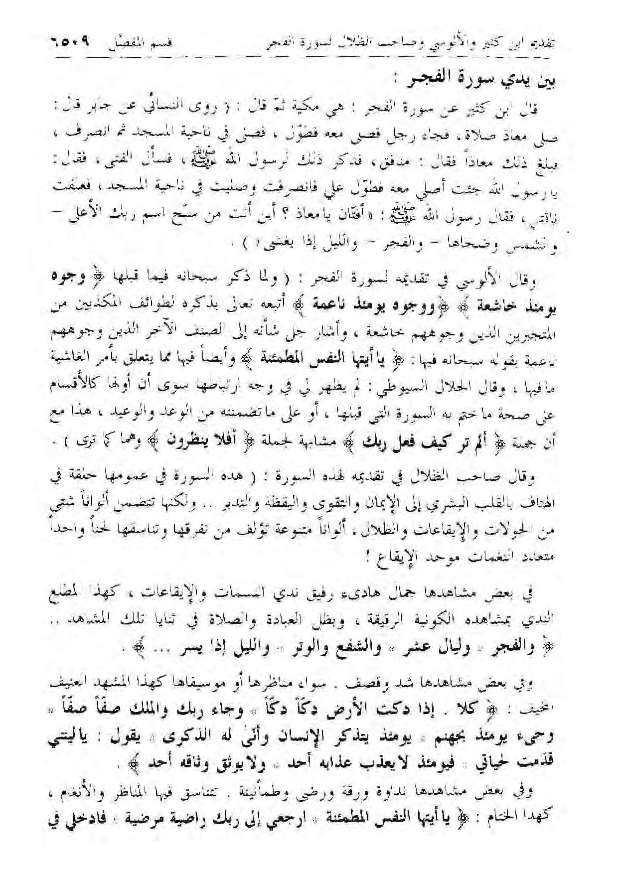 وَالْفَجْرِ* وَلَيالٍ عَشْرٍ* وَالشَّفْعِ وَالْوَتْرِ* وَاللَّيْلِ إِذا يَسْرِ ....
