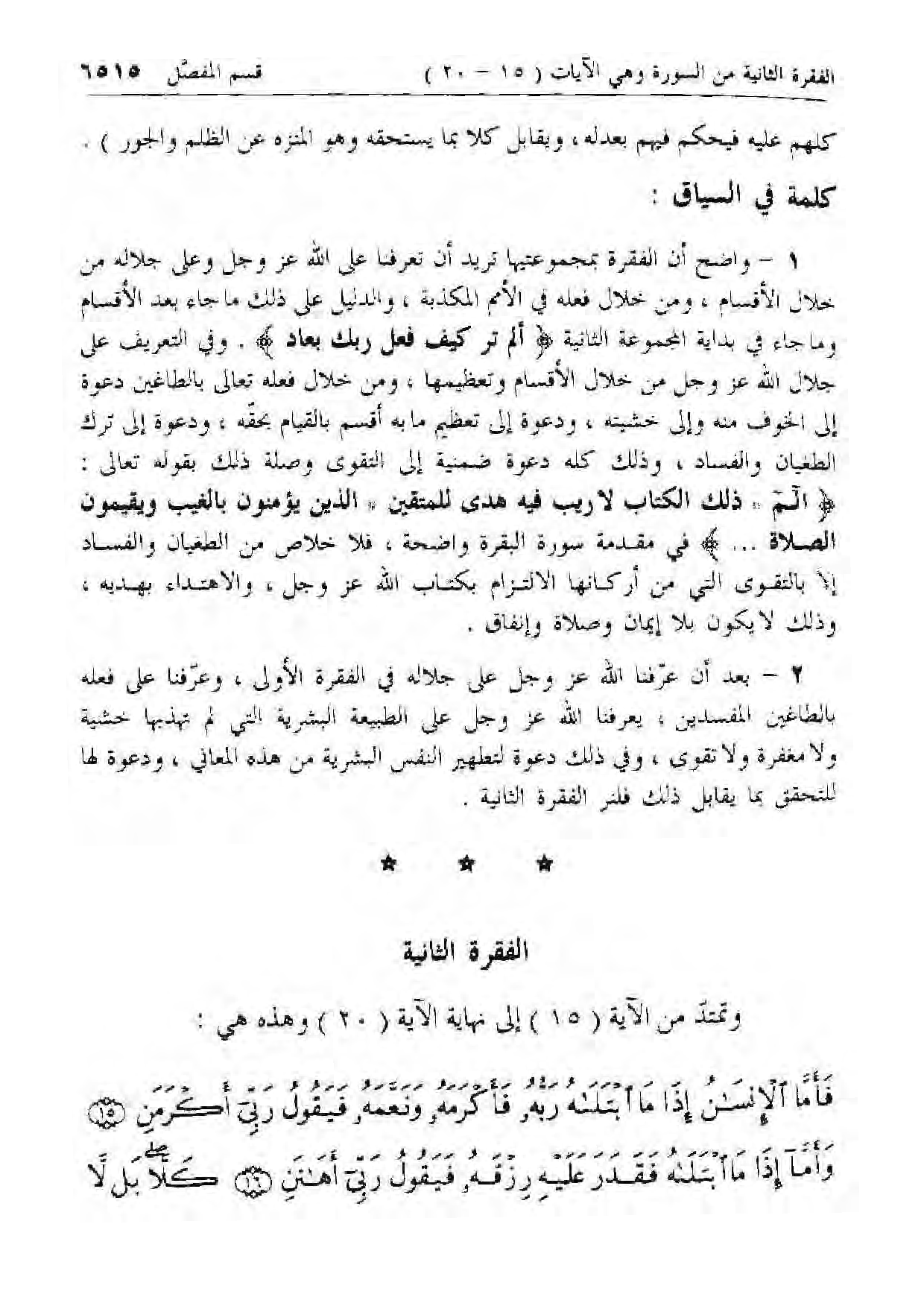وتمتد من الآية (15) إلى نهاية الآية (20) وهذه هي:
