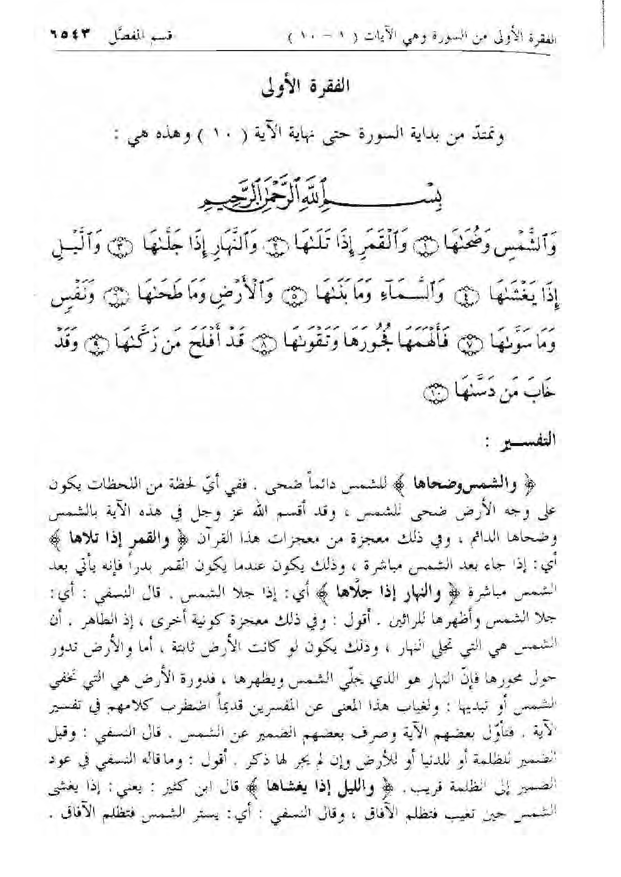 بِسْمِ اللَّهِ الرَّحْمنِ الرَّحِيمِ [سورة الشمس (91): الآيات 1 الى 10]