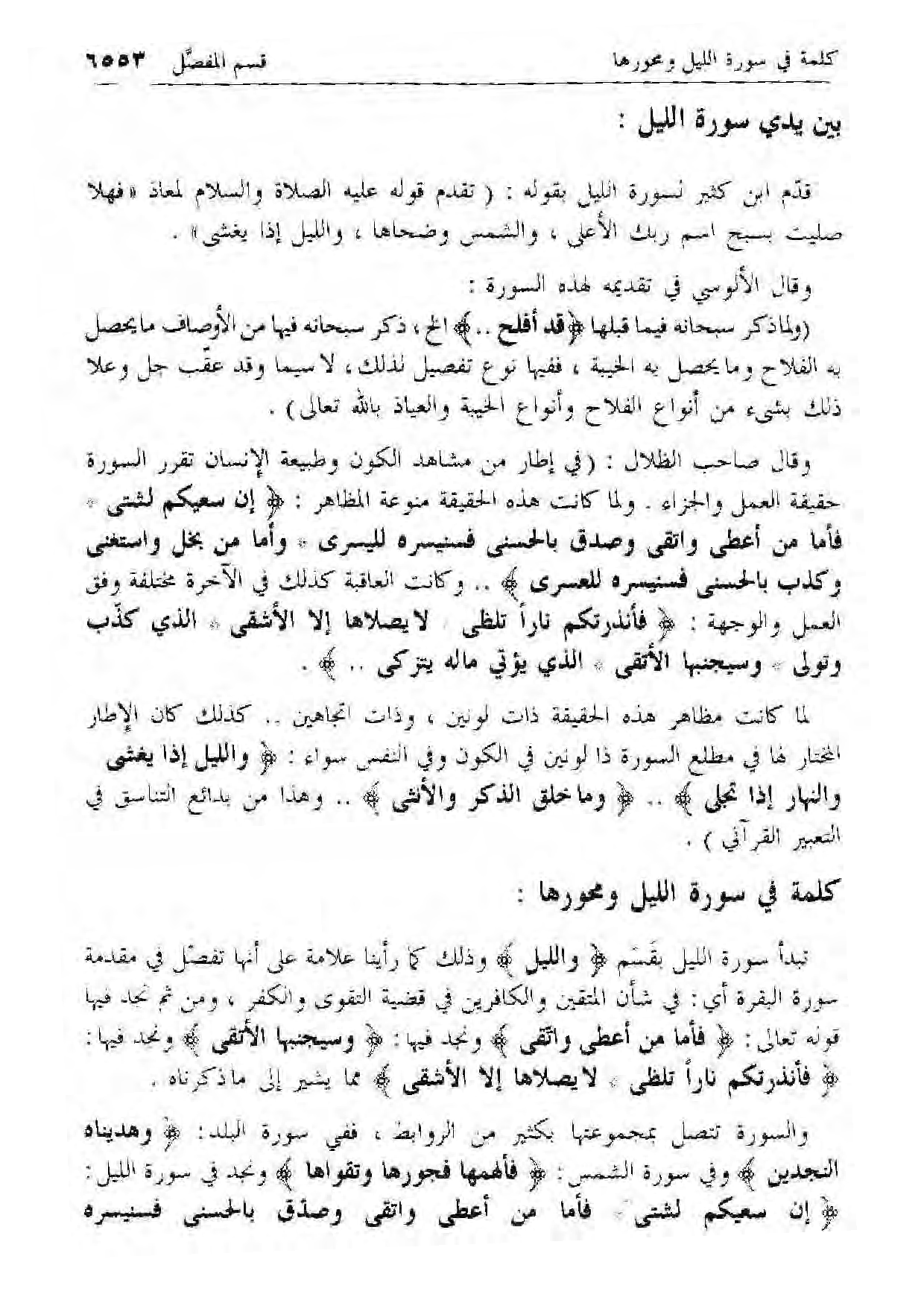لما كانت مظاهر هذه الحقيقة ذات لونين، وذات اتجاهين .. كذلك كان الإطار المختار لها في مطلع السورة ذا لونين في الكون وفي النفس سواء: وَاللَّيْلِ إِذا يَغْشى * وَالنَّهارِ إِذا تَجَلَّى .. وَما خَلَقَ الذَّكَرَ وَالْأُنْثى .. وهذا من بدائع التناسق في التعبير القرآني).