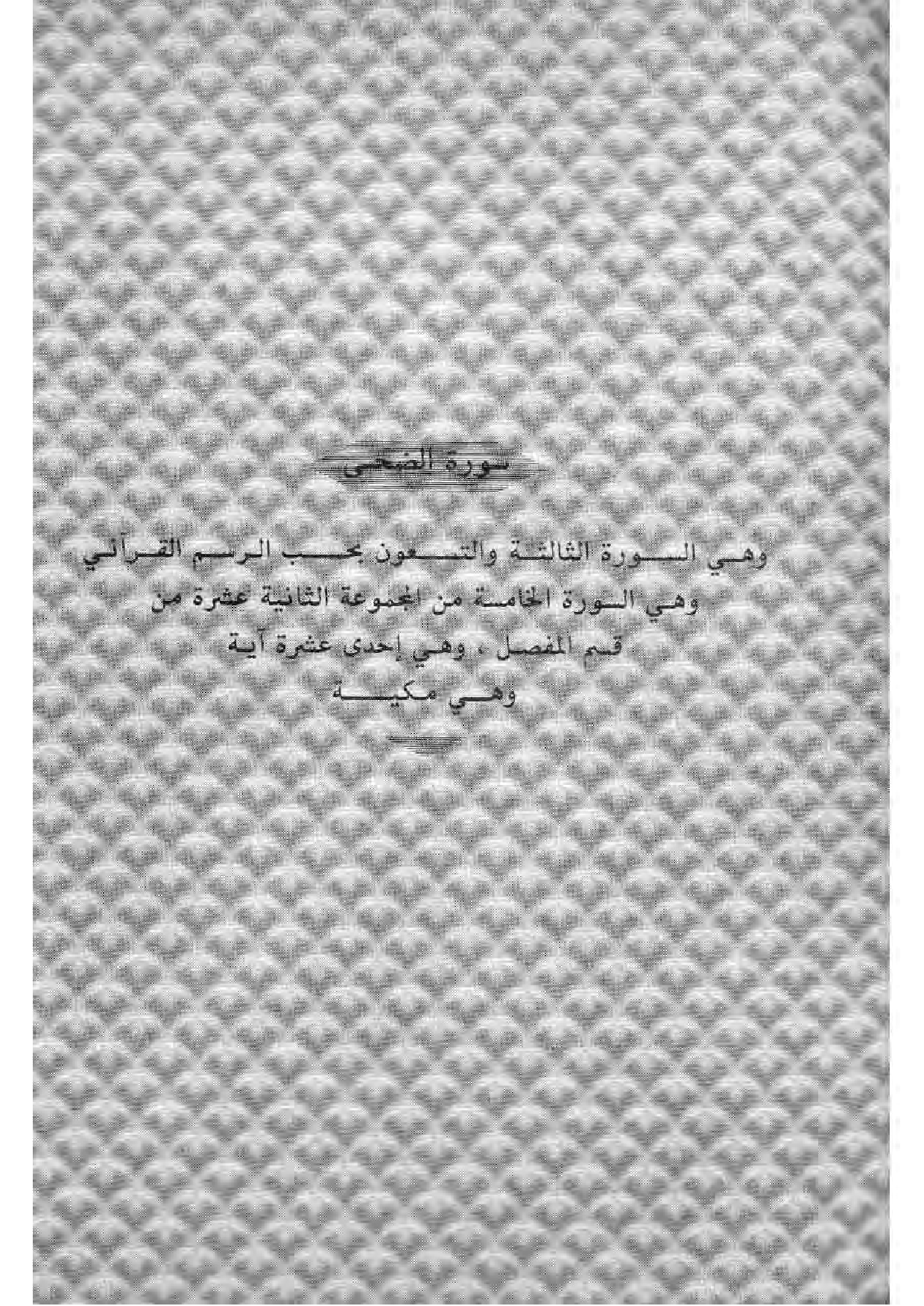 وهي السورة الثالثة والتسعون بحسب الرسم القرآني وهي السورة الخامسة من المجموعة الثانية عشرة من قسم المفصل، وهي إحدى عشرة آية وهي مكية