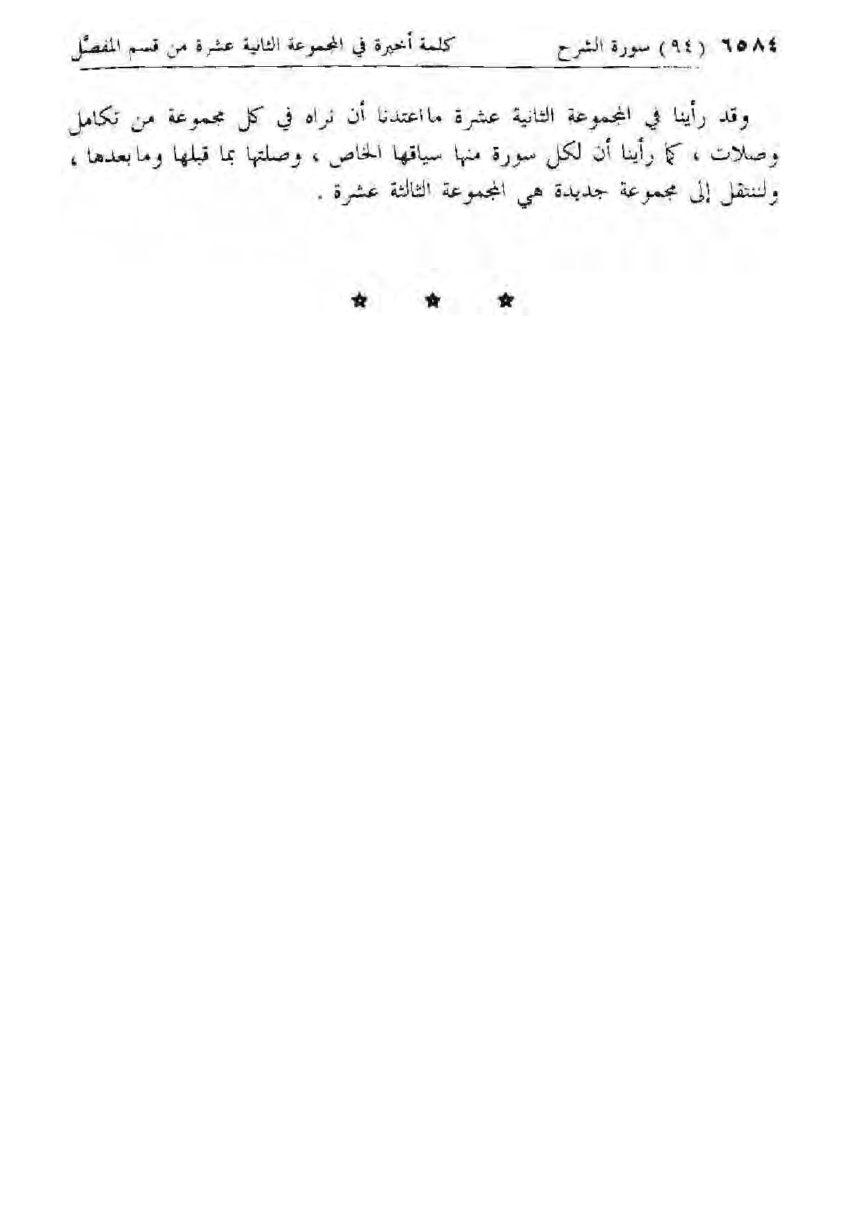 وقد رأينا في المجموعة الثانية عشرة ما اعتدنا أن نراه في كل مجموعة من تكامل وصلات، كما رأينا أن لكل سورة منها سياقها الخاص، وصلتها بما قبلها وما بعدها، ولننتقل إلى مجموعة جديدة هي المجموعة الثالثة عشرة.
