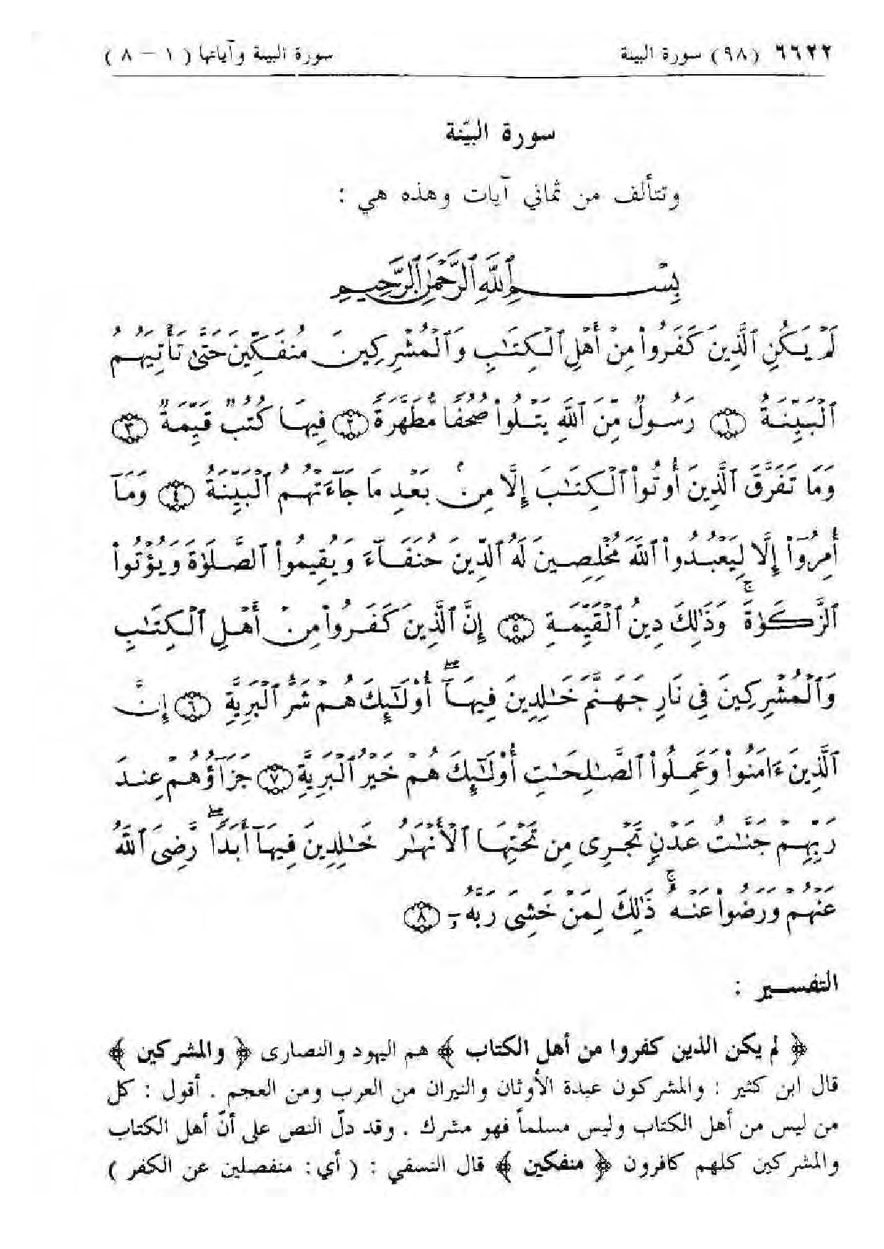 بِسْمِ اللَّهِ الرَّحْمنِ الرَّحِيمِ [سورة البينة (98): الآيات 1 الى 8]