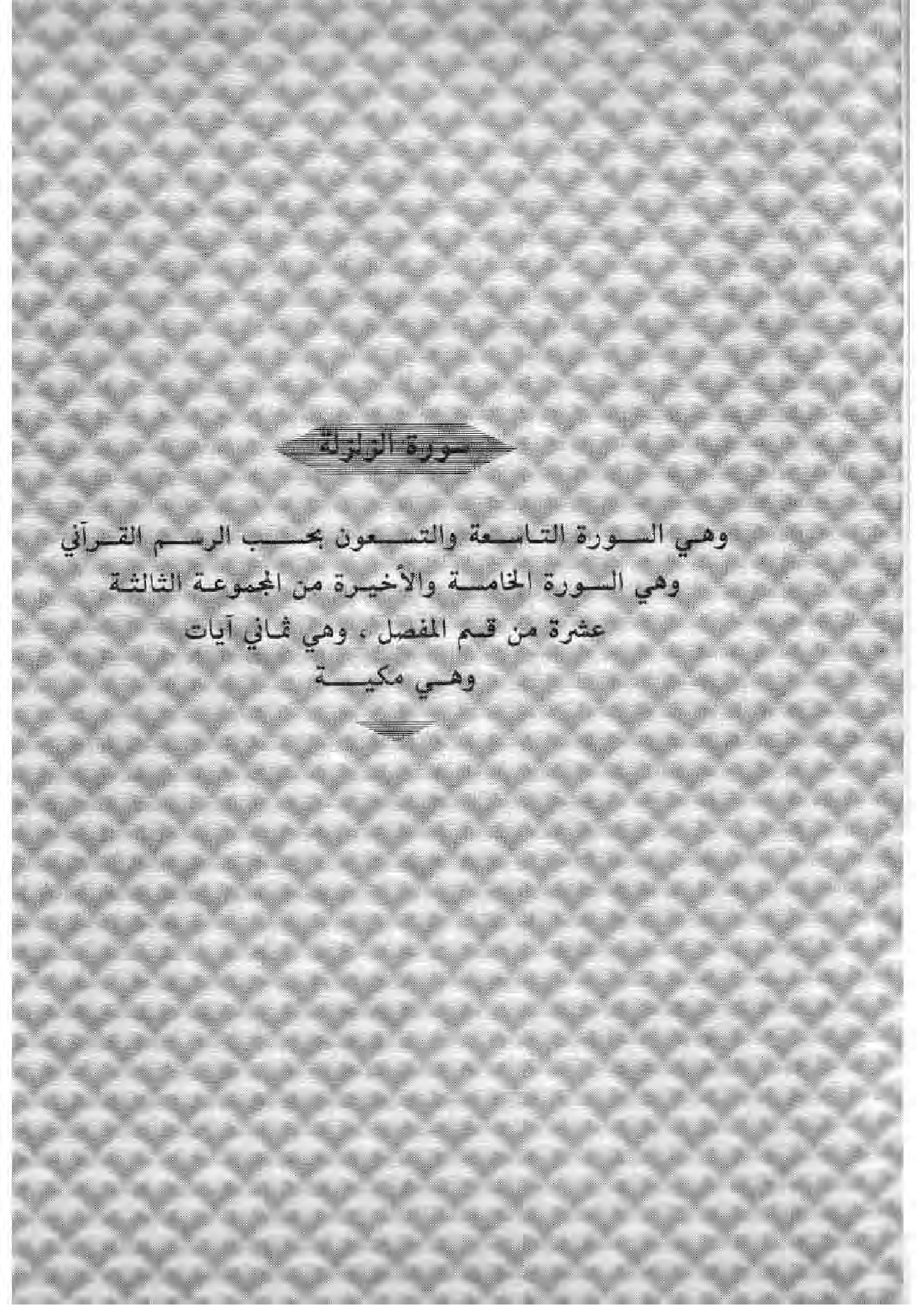 وهي السورة التاسعة والتسعون بحسب الرسم القرآني وهي السورة الخامسة والأخيرة من المجموعة الثالثة عشرة من قسم المفصل، وهي ثمان آيات وهي مكية