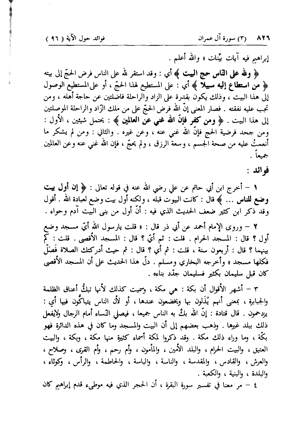 1 - أخرج ابن أبي حاتم عن علي رضي الله عنه في قوله تعالى: إِنَّ أَوَّلَ بَيْتٍ وُضِعَ لِلنَّاسِ ... قال: كانت البيوت قبله، ولكنه أول بيت وضع لعبادة الله. أقول وقد ذكر ابن كثير ضعف الحديث الذي فيه: أن أول من بنى البيت آدم وحواء.