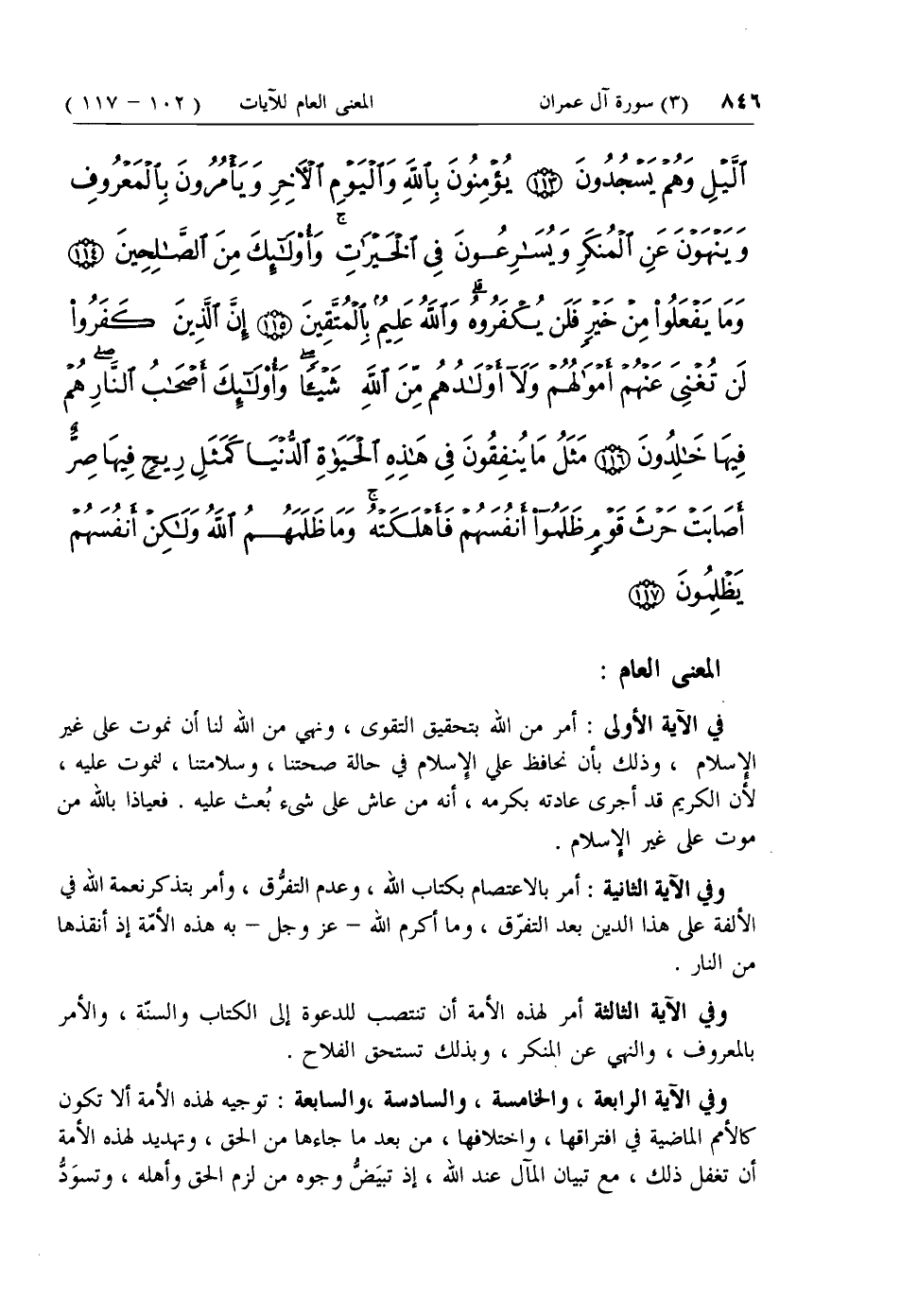 وفي الآية الثانية: أمر بالاعتصام بكتاب الله، وعدم التفرق، وأمر بتذكر نعمة الله في الألفة على هذا الدين بعد التفرق، وما أكرم الله- عزّ وجل- به هذه الأمة إذ أنقذها من النار.