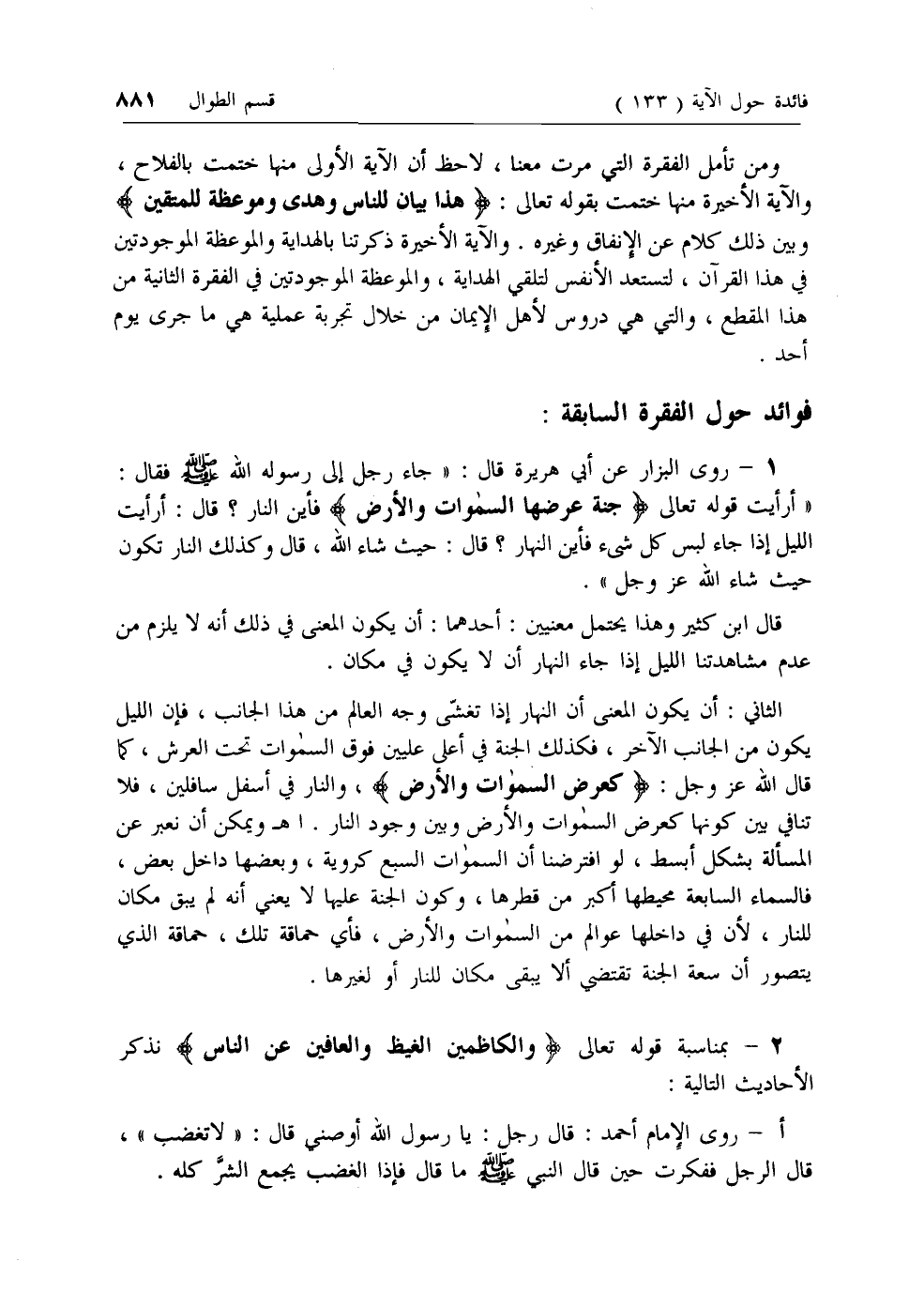 2 - بمناسبة قوله تعالى وَالْكاظِمِينَ الْغَيْظَ وَالْعافِينَ عَنِ النَّاسِ نذكر الأحاديث التالية: