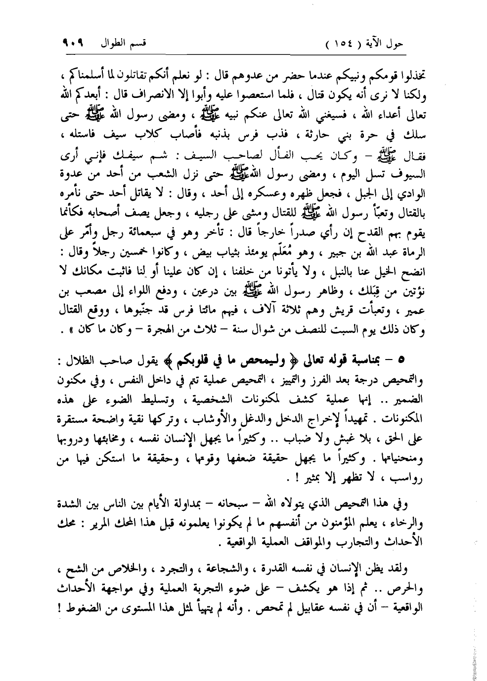 5 - بمناسبة قوله تعالى وَلِيُمَحِّصَ ما فِي قُلُوبِكُمْ يقول صاحب الظلال: