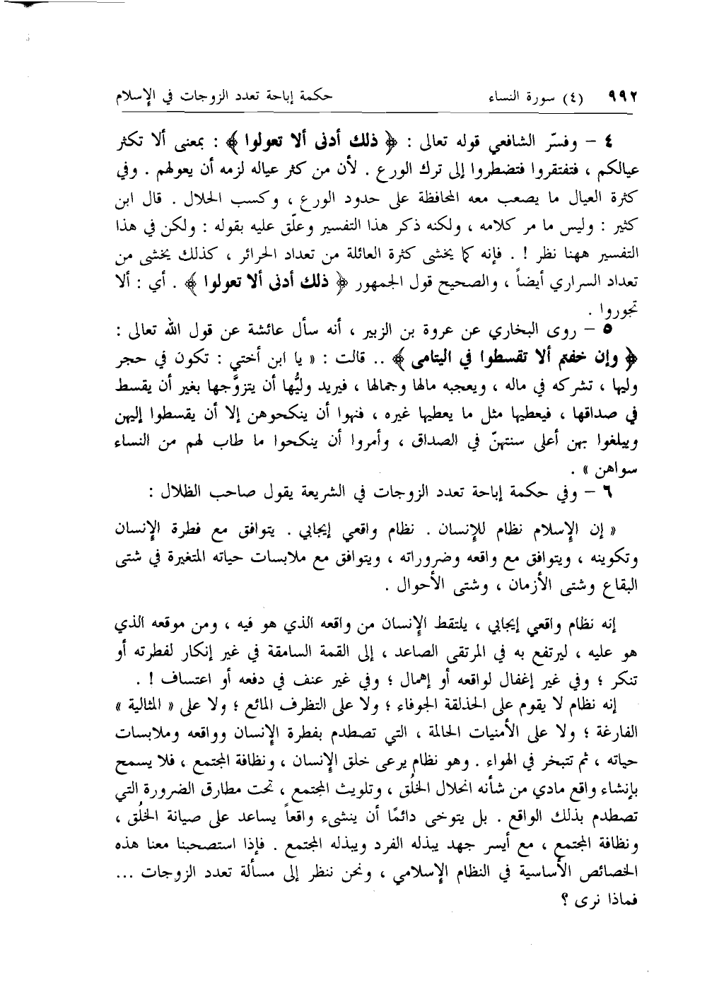 6 - وفي حكمة إباحة تعدد الزوجات في الشريعة يقول صاحب الظلال: