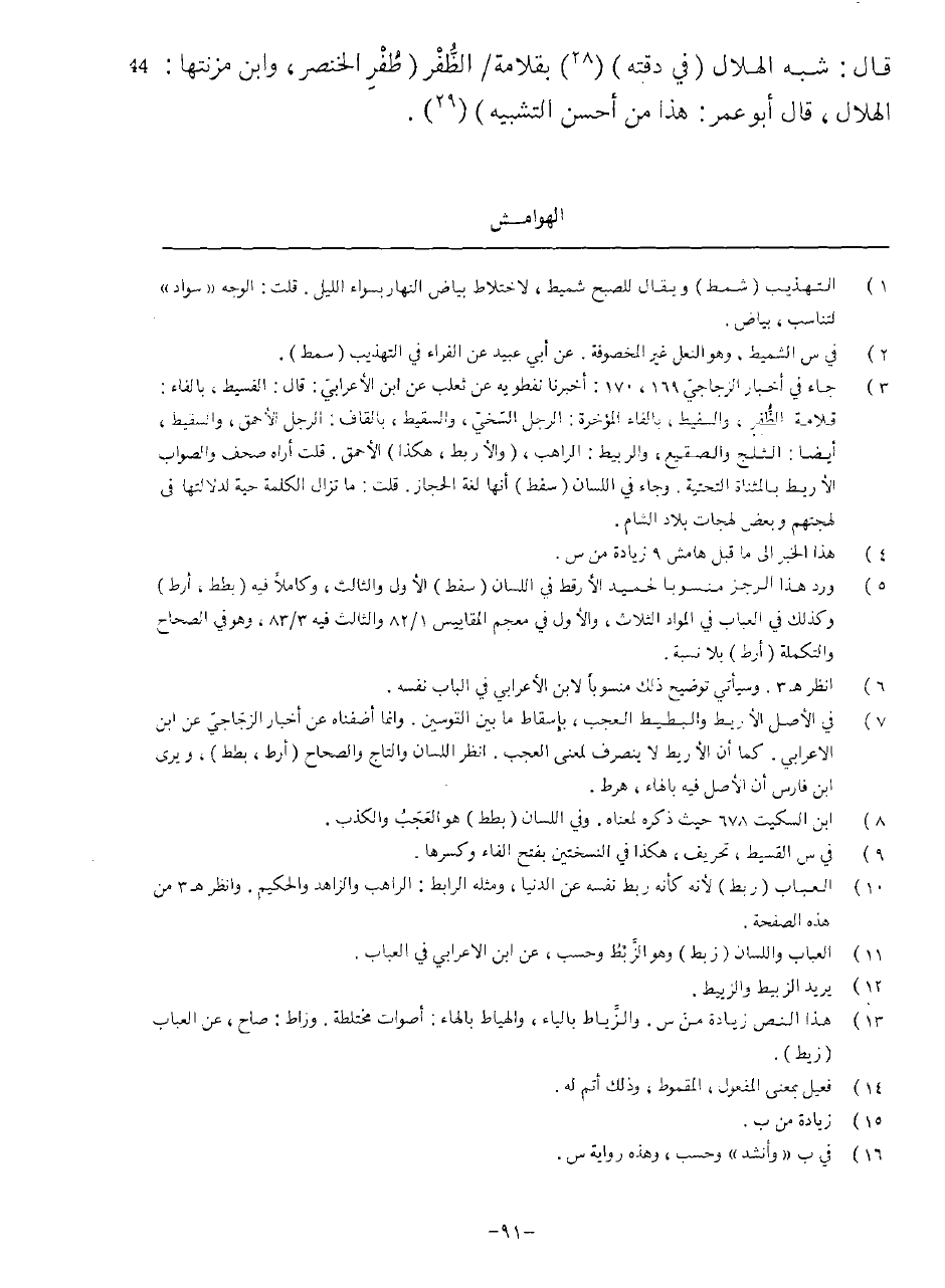 قَالَ شبه الْهلَال فِي دقته بقلامة الظفر ظفر الْخِنْصر وَابْن مزنتها الْهلَال قَالَ أَبُو عمر هَذَا من احسن التَّشْبِيه