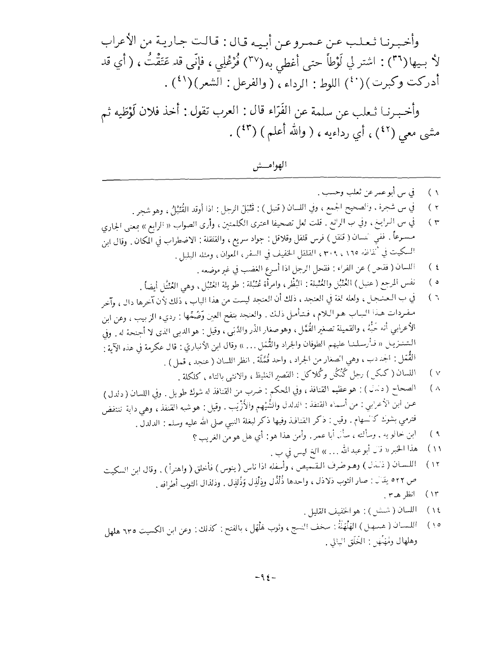 وَأخْبرنَا ثَعْلَب عَن سَلمَة عَن الْفراء قَالَ الْعَرَب تَقول أَخذ فلَان لوطيه ثمَّ مَشى معي أَي رداءيه وَالله أعلم