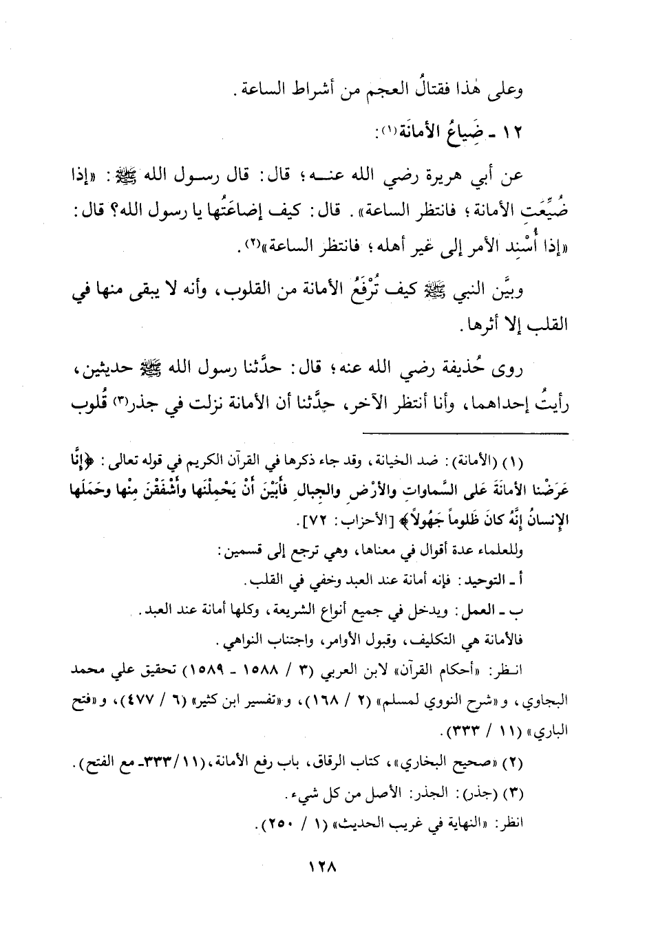 (¬٢) "صحيح البخاريّ"، كتاب الرقاق، باب رفع الأمانة، (١١/ ٣٣٣ - مع الفتح).