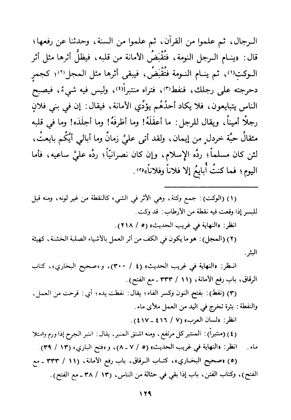 (¬٥) "صحيح البخاريّ"، كتاب الرقاق، باب رفع الأمانة، (١١/ ٣٣٣ - مع الفتح)، وكتاب الفتن، باب إذا بقي في حثالة من النَّاس، (١٣/ ٣٨ - مع الفتح).