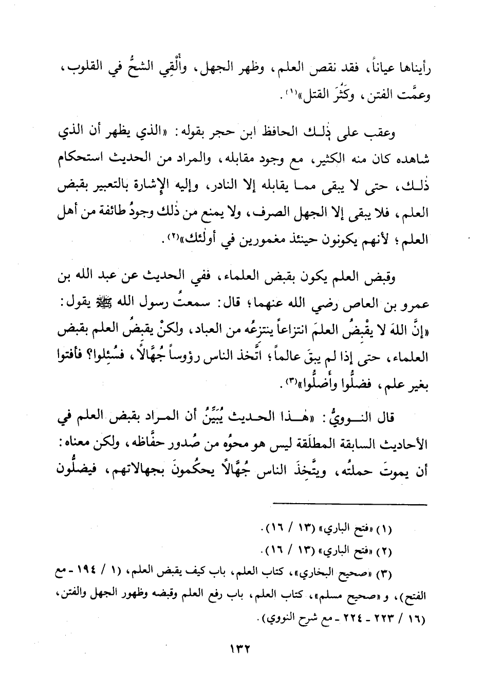 (¬٣) "صحيح البخاريّ"، كتاب العلم، باب كيف يقبض العلم، (١/ ١٩٤ - مع الفتح)، و"صحيح مسلم"، كتاب العلم، باب رفع العلم وقبضه وظهور الجهل والفتن، (١٦/ ٢٢٣ - ٢٢٤ - مع شرح النووي).