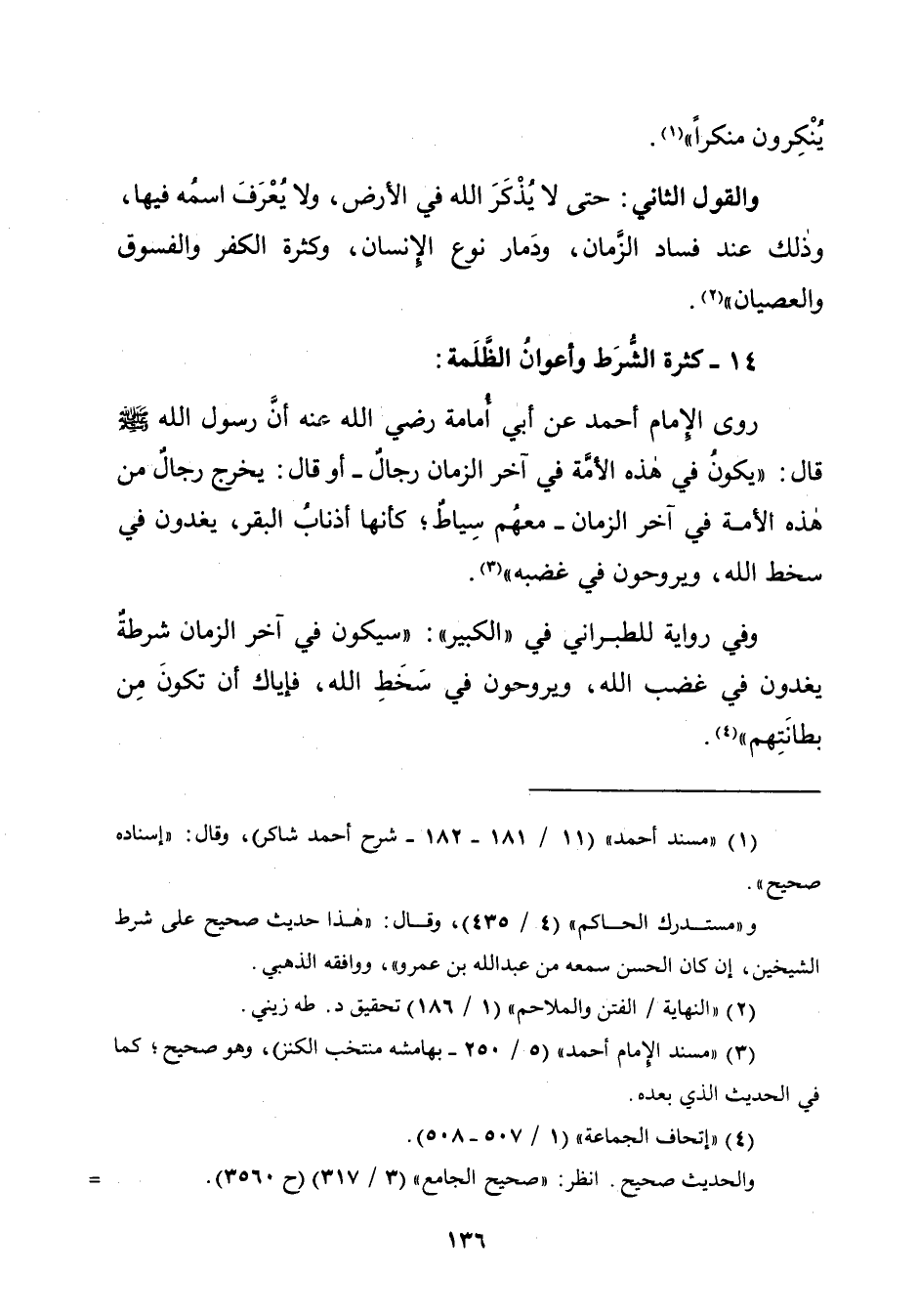 ١٤ - كثرة الشُّرَط وأعوانُ الظَّلَمة: