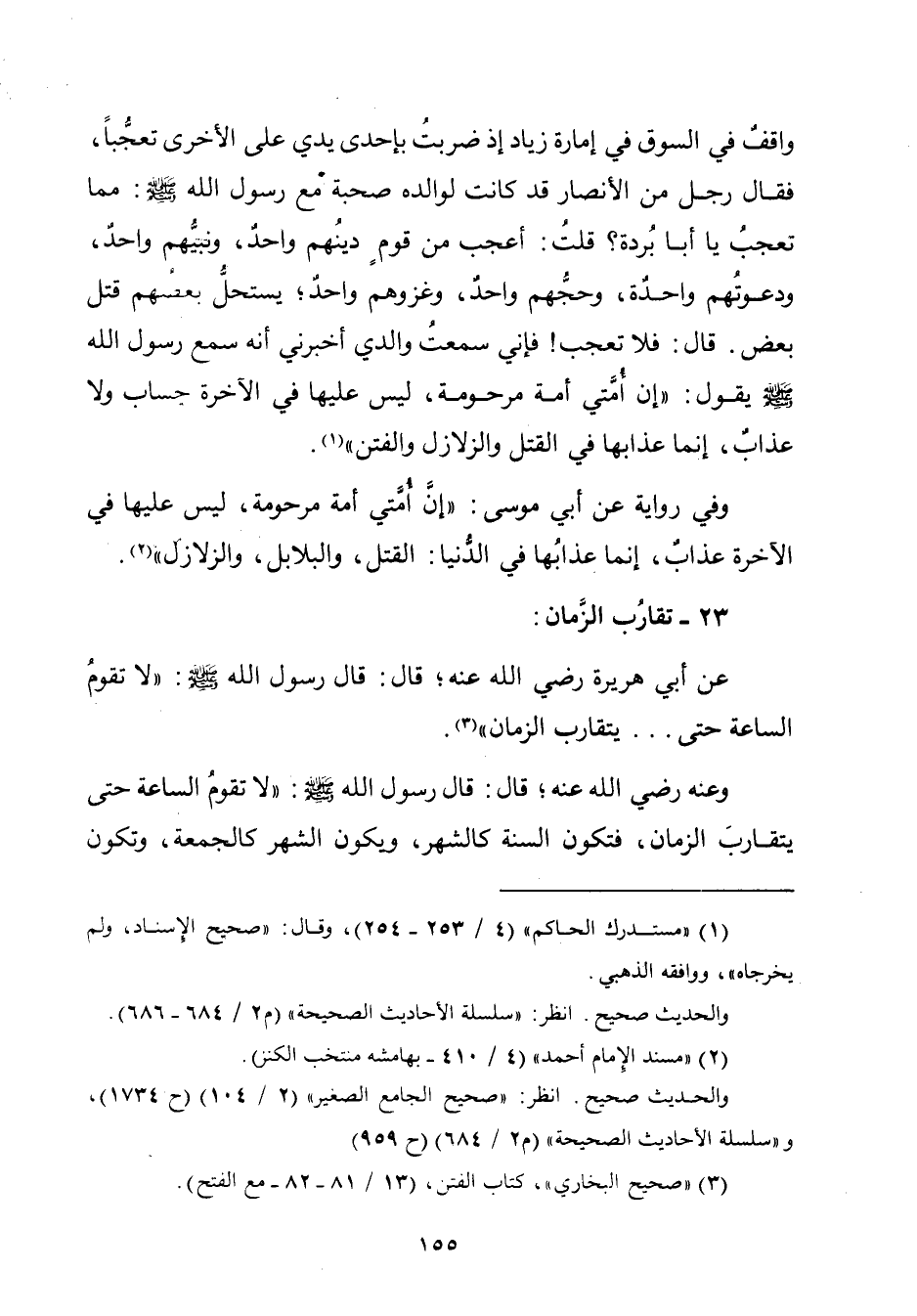 عن أبي هريرة رضي الله عنه؛ قال: قال رسول الله - صلّى الله عليه وسلم -: "لا تقومُ السّاعة حتّى ... يتقارب الزّمان" (¬٣).
