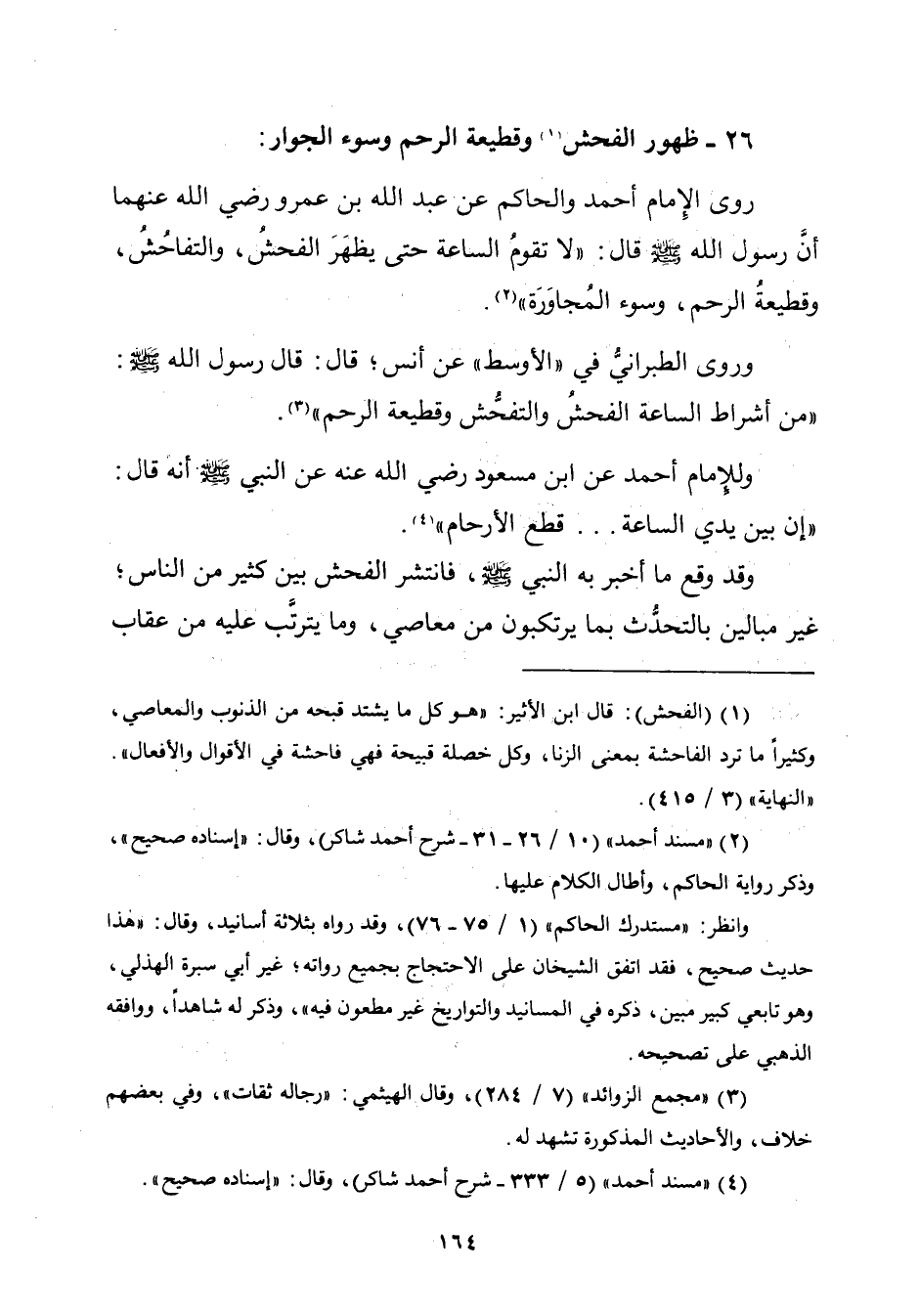 ٢٦ - ظهور الفحش (¬١) وقطيعة الرّحم وسوء الجوار: