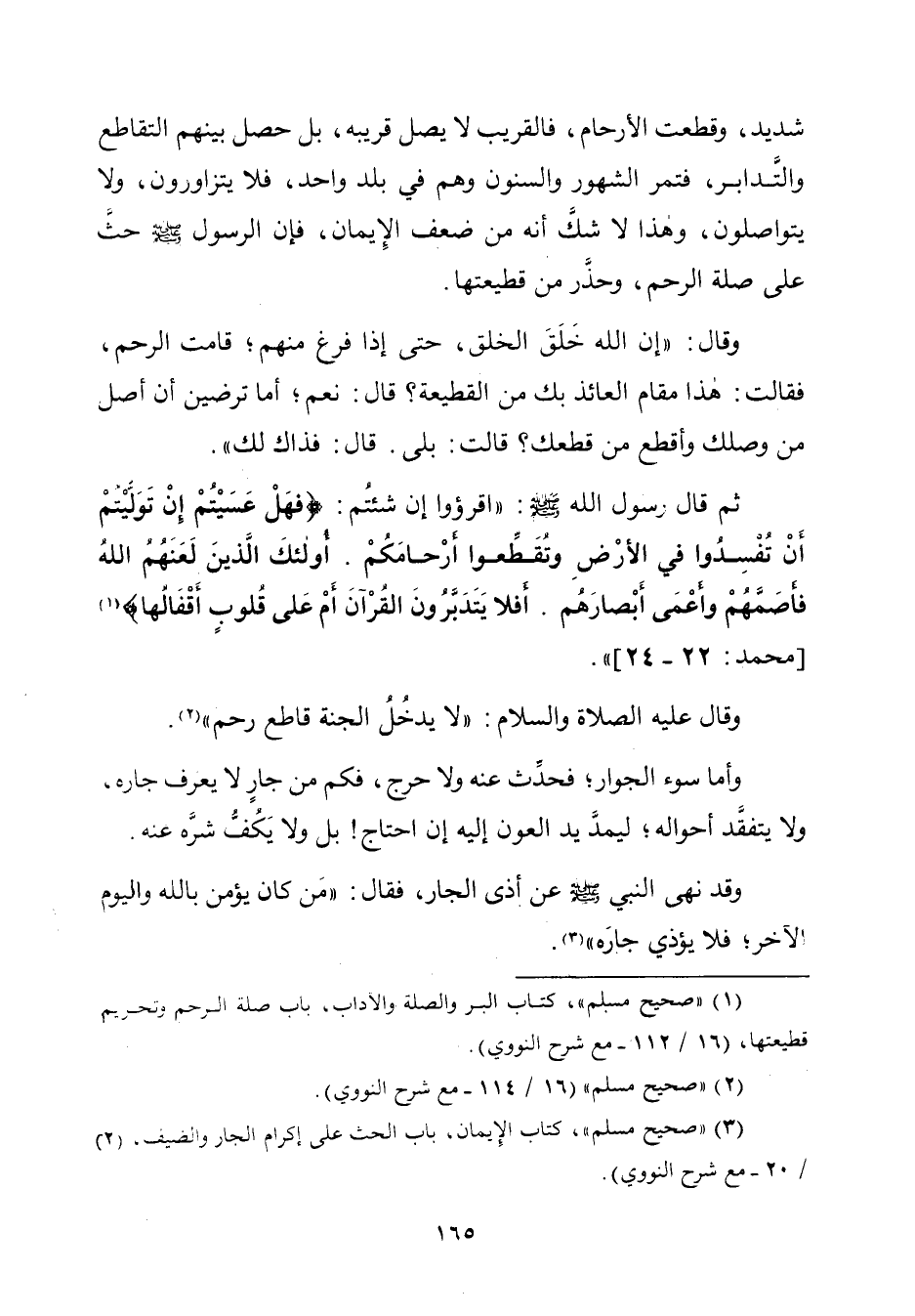 (¬١) "صحيح مسلم"، كتاب البرّ والصلة والآداب، باب صلة الرّحم وتحريم قطيعتها، (١٦/ ١١٢ - مع شرح النووي).