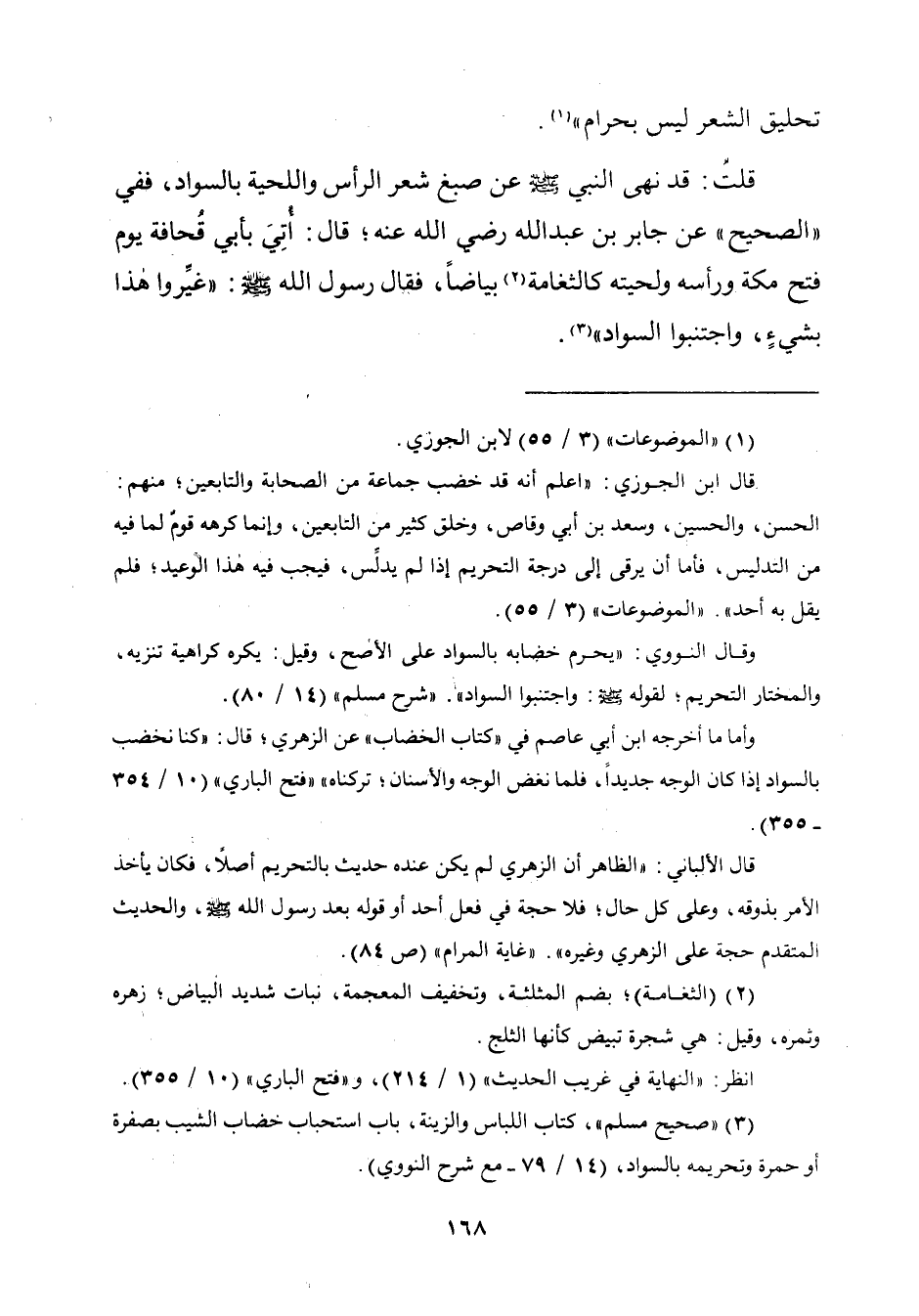 (¬٣) "صحيح مسلم"، كتاب اللباس والزينة، باب استحباب خضاب الثيب بصفرة أو حمرة وتحريمه بالسواد، (١٤/ ٧٩ - مع شرح النووي).