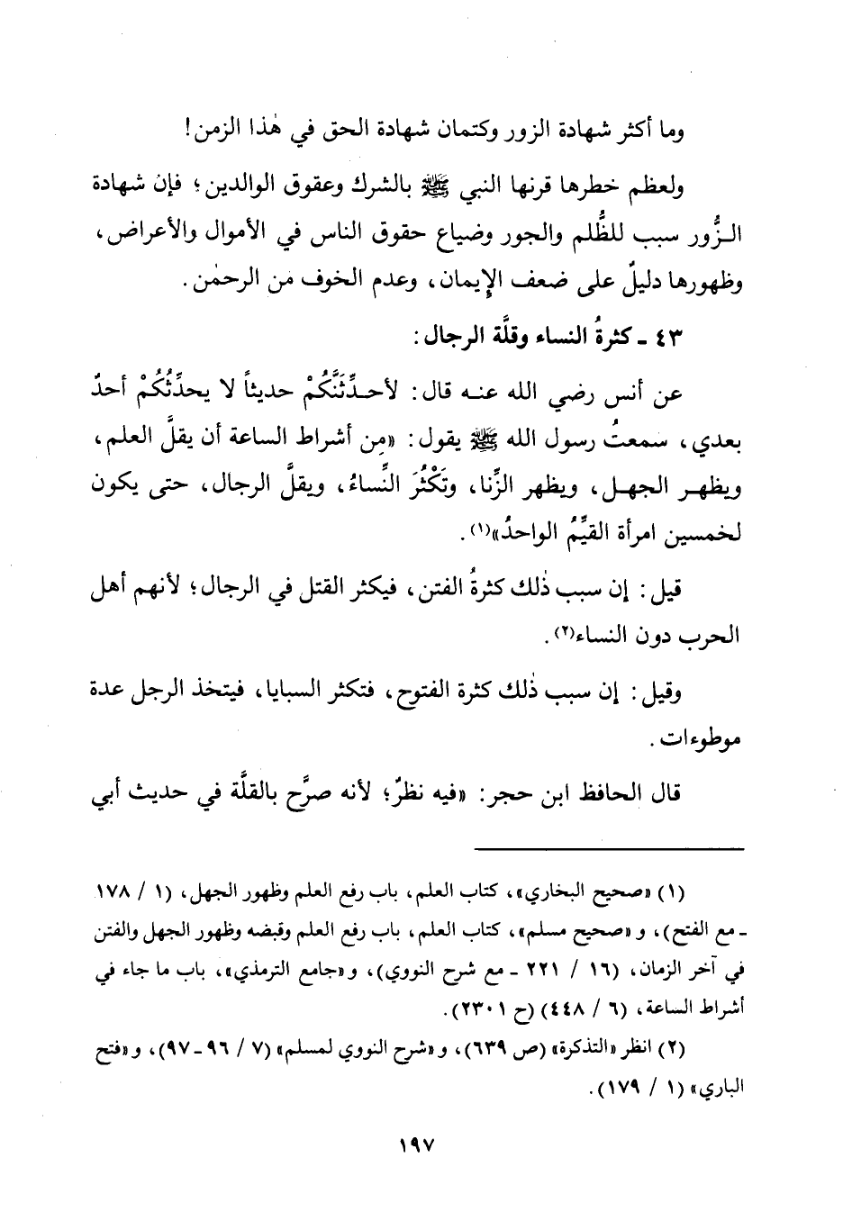(¬١) "صحيح البخاريّ"، كتاب العلم، باب رفع العلم وظهور الجهل، (١/ ١٧٨ - مع الفتح)، و"صحيح مسلم"، كتاب العلم، باب رفع العلم وقبضه وظهور الجهل والفتن في آخر الزّمان، (١٦/ ٢٢١ - مع شرط النووي)، و"جامع التّرمذيّ"، باب ما جاء في أشراط السّاعة، (٦/ ٤٤٨) (ح ٢٣٠١).